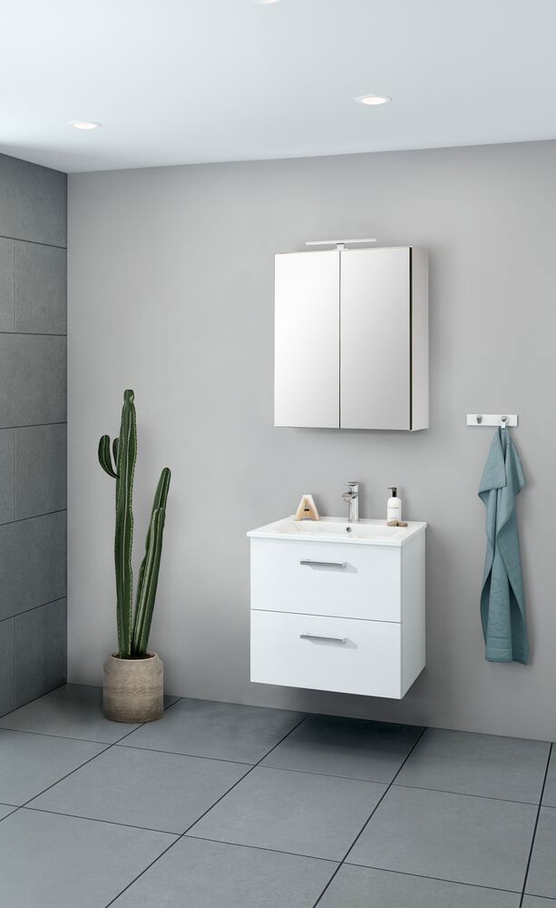 Spegelskåpet Select är mycket mer än bara ett spegelskåp - det är din personliga badrumsuppgradering. Välj dina egna lampor och skapa den perfekta belysningen för att starta dagen med stil. Med spegelskåpet får du gott om förvaringsutrymme och ett elluttag för dina elektriska apparater. Upplev bekvämlighet och elegans i ett med Select spegelskåp - din dagliga följeslagare för en strålande morgon.