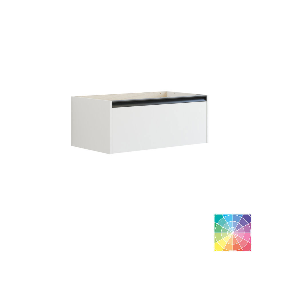 Detta underskåp med integrerat handtag är det perfekta valet för ett modernt badrum i behov av extra förvaring. Den enda lådan utan avloppsutskärning erbjuder gott om utrymme för dina produkter och den diskreta designen av handtaget ger en elegant och harmonisk finish. Det svarta handtaget ger en raffinerad touch och när du väljer en valfri färg matchar handtaget skåpets färg för ett enhetligt utseende. Kombinera skåpet med ett underskåp och en bänkskiva för en unik och asymmetrisk badrumsdesign som andas stil och funktionalitet. OBS: Det tillkommer en startsavgift (BI1) för produkter med valfri färg. Den betalas en gång per valfri färg oavsett antal produkter. Kom ihåg att komplettera badrumsmöblerna med små, praktiska detaljr som du har glädje av varje dag. Exempelvis belysning i lådor och skåp, inbyggda eluttag och rörelsesensor på underbelysningen för att underlätta nattliga badrumsbesök. Dessa tillval beställs samtidigt som du köper dina möbler.