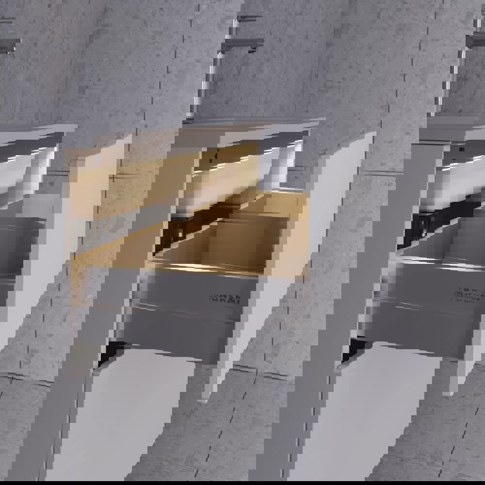 Gör ditt badrum både funktionellt och karaktärsfullt med detta skåp med randig front. De vertikala ränderna tillför en modern och exklusiv look som ger möbeln ett elegant spel i ytan. Skåpet har en rymlig låda utan avloppsutskärning, vilket ger dig maximalt förvaringsutrymme för badrumsartiklar. Använd skåpet med en bänkskiva för en minimalistisk look eller kombinera det med ett underskåp och ett anpassat tvättställ för en harmonisk och elegant helhet. De tre färgerna - vit, sand och ljusblå - ger dig möjlighet att sätta din personliga prägel: välj vit för en klassisk design, sand för ett varmt och lugnt uttryck eller ljusblå för en frisk fläkt. Den här flexibla lösningen ger ditt badrum ett modernt och asymmetriskt utseende där funktionalitet och stil går hand i hand. Kom ihåg att komplettera badrumsmöblerna med små, praktiska detaljr som du har glädje av varje dag. Exempelvis belysning i lådor och skåp, inbyggda eluttag och rörelsesensor på underbelysningen för att underlätta nattliga badrumsbesök. Dessa tillval beställs samtidigt som du köper dina möbler.