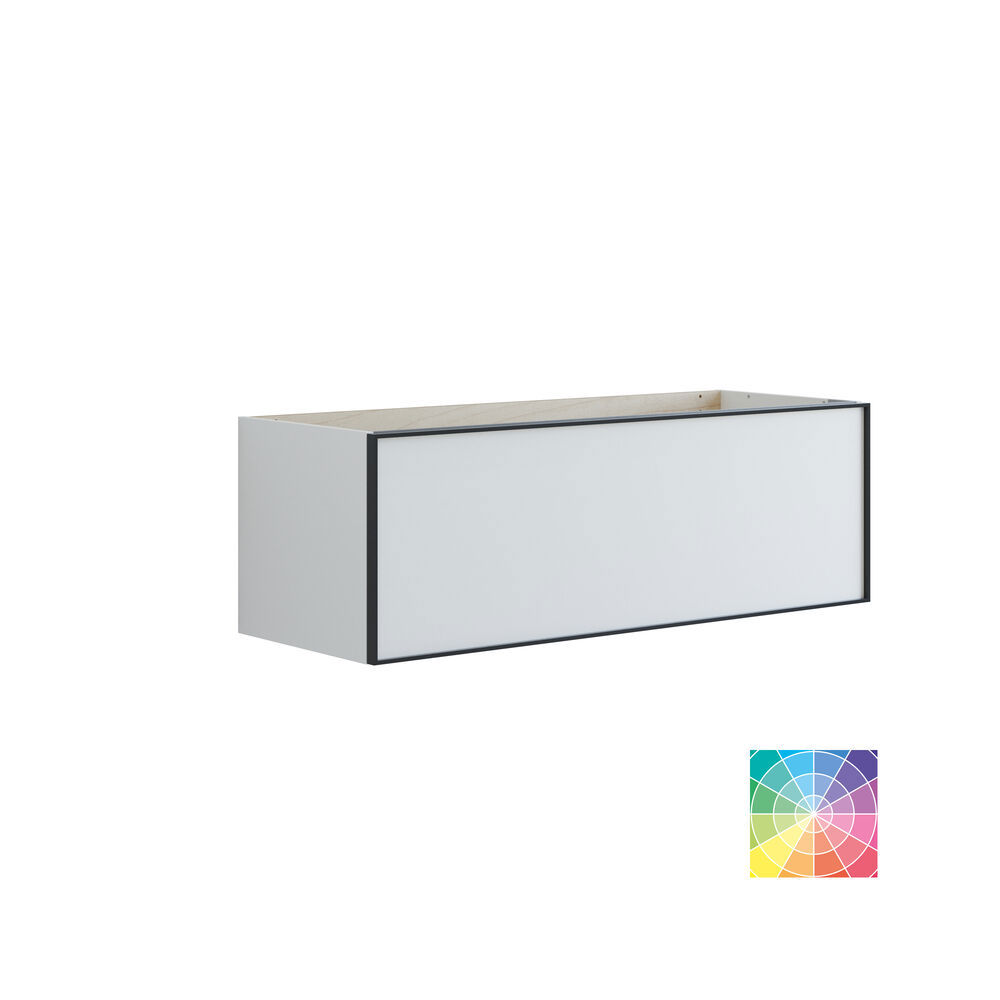 Skapa den perfekta badrumsupplevelsen med skåpet med en låda. Detta mångsidiga skåp fungerar som den idealiska kompletteringen till ditt tvättställsskåp och har en rymlig låda som enkelt kan förvara alla dina toalettartiklar. Den stiliga svarta ramen runt lådan ger skåpet ett modernt och raffinerat utseende. Med skåpet får du inte bara praktisk förvaring utan också en estetisk lösning som tillför karaktär till ditt badrum. OBS: Det tillkommer en startsavgift (BI1) för produkter med valfri färg. Den betalas en gång per valfri färg oavsett antal produkter. Kom ihåg att komplettera badrumsmöblerna med små, praktiska detaljr som du har glädje av varje dag. Exempelvis belysning i lådor och skåp, inbyggda eluttag och rörelsesensor på underbelysningen för att underlätta nattliga badrumsbesök. Dessa tillval beställs samtidigt som du köper dina möbler.