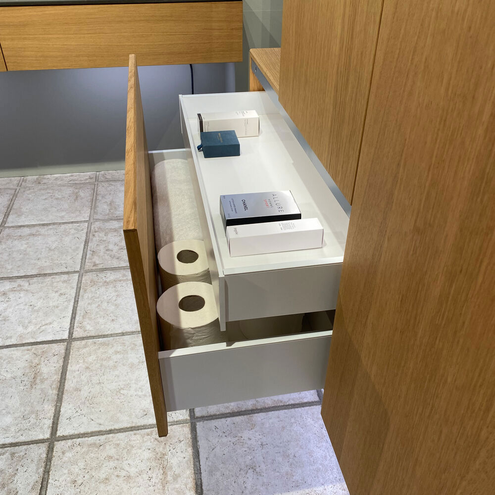 Dansani Calidris skåp med en låda är den perfekta lösningen för smart och elegant förvaring i badrummet. Skåpen har inget utrymme för avlopp och passar därför för dem som väljer en asymmetrisk lösning med ett skräddarsytt tvättställ, eller för dem som vill ha extra förvaring någon annanstans i badrummet. Den rymliga lådan gör att du kan hålla ordning i badrummet och det finns gott om plats för krämer, schampo, hårtork och mycket mer. Dansani Calidris-skåpet ger dig möjlighet att organisera ditt badrum på ett sammanhängande och vackert sätt. OBS: Det tillkommer en startsavgift (BI1) per ek kulör och valfri färg. Betalas en gång pr. ek och valfri färg oavsett antal produkter. Kom ihåg att komplettera badrumsmöblerna med små, praktiska detaljr som du har glädje av varje dag. Exempelvis belysning i lådor och skåp, inbyggda eluttag och rörelsesensor på underbelysningen för att underlätta nattliga badrumsbesök. Dessa tillval beställs samtidigt som du köper dina möbler.