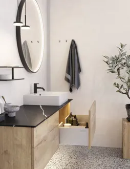 Skapa den ultimata oasen i badrummet med skåpet med en låda. Detta mångsidiga skåp är den perfekta matchen till ditt tvättställskåp, och den djupa lådan ger gott om förvaringsutrymme för dina toalettartiklar. Med skåpet får du både funktionalitet och estetik. Upplev den perfekta kombinationen av form och funktion med skåpet med en låda - och skapa en organiserad atmosfär som utstrålar elegans. OBS: Det tillkommer en startsavgift (BI1) för produkter med valfri färg. Den betalas en gång per valfri färg oavsett antal produkter. Kom ihåg att komplettera badrumsmöblerna med små, praktiska detaljr som du har glädje av varje dag. Exempelvis belysning i lådor och skåp, inbyggda eluttag och rörelsesensor på underbelysningen för att underlätta nattliga badrumsbesök. Dessa tillval beställs samtidigt som du köper dina möbler.