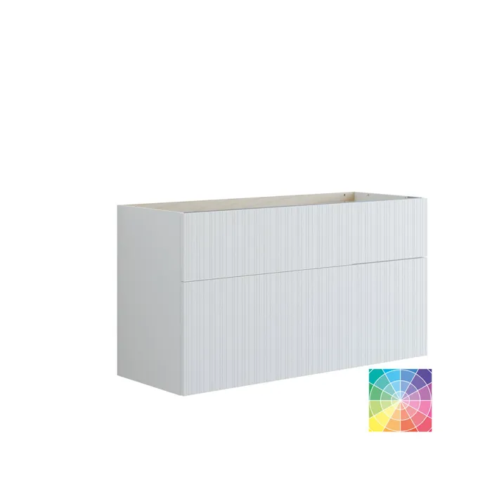 Skapa ett stilfullt badrum med skåpet som har 2 lådor och en höjd på 64 cm. Den höga bottenlådan ger dig gott om plats för förvaring av dina badrumsartiklar, medan den räflade fronten tillför en modern och unik detalj till designen. Dessa skåp kan användas för sig själva eller kombineras med ett tvättställsskåp samt en bänkskiva med uppställd tvättställ för en spännande asymmetrisk lösning. Du har möjlighet att välja mellan olika färger, så att du kan anpassa skåpen till din personliga stil. Skåpet med 2 lådor erbjuder både funktionalitet och ett estetiskt uttryck som gör ditt badrum mer elegant och organiserat. OBS: Det tillkommer en startsavgift (BI1) för produkter med valfri färg. Den betalas en gång per valfri färg oavsett antal produkter. Kom ihåg att komplettera badrumsmöblerna med små, praktiska detaljr som du har glädje av varje dag. Exempelvis belysning i lådor och skåp, inbyggda eluttag och rörelsesensor på underbelysningen för att underlätta nattliga badrumsbesök. Dessa tillval beställs samtidigt som du köper dina möbler.