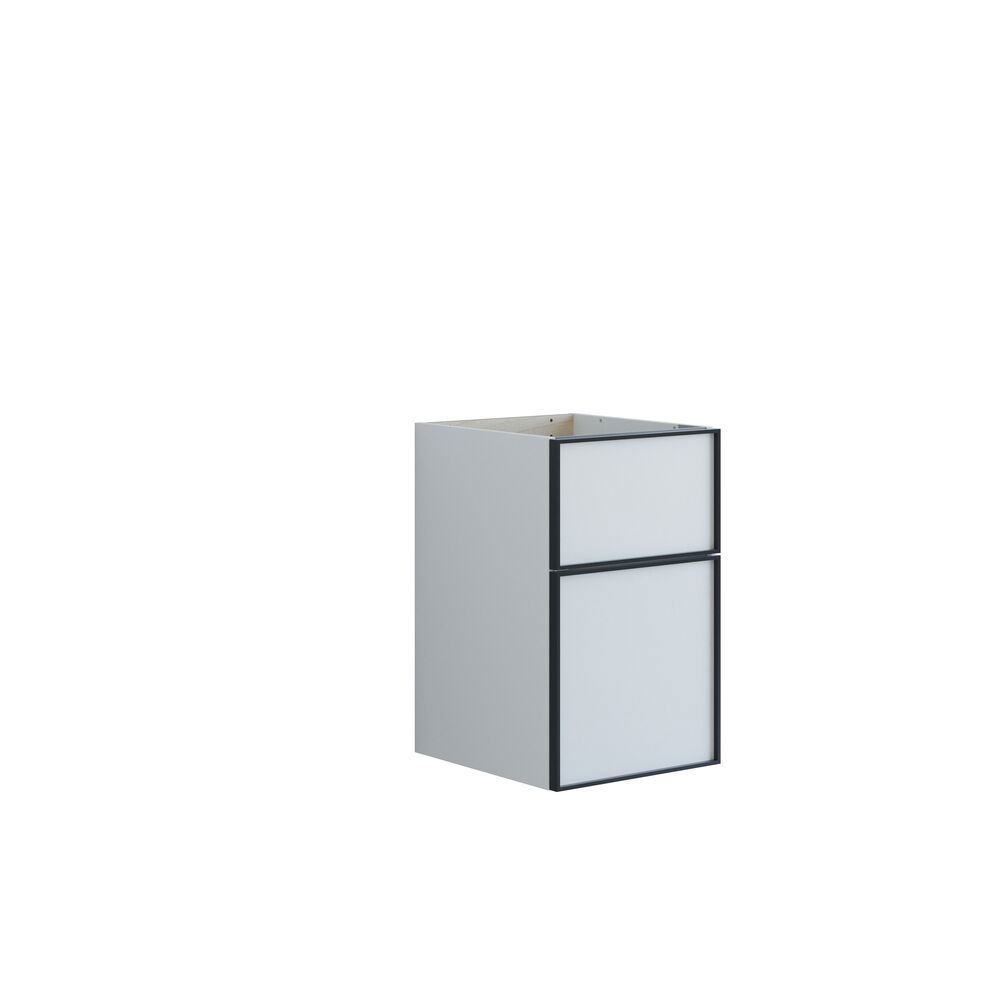 Skåp med 2 lådor har en höjd på 64 cm och en hög bottenlåda som ger generös förvaringsplats för alla dina badrumsartiklar. Den stiliga svarta ramen tillför ett modernt och sofistikerat inslag till skåpen. De kan användas ensamma eller i kombination med ett tvättställsskåp och en bänkskiva med en uppställd tvättställ för en intressant asymmetrisk effekt. Välj bland olika färger för att hitta det skåp som passar bäst till ditt badrum. Skåp med 2 lådor kombinerar både estetik och funktionalitet, vilket gör ditt badrum mer organiserat och stiligt. OBS: Det tillkommer en startsavgift (BI1) för produkter med valfri färg. Den betalas en gång per valfri färg oavsett antal produkter. Kom ihåg att komplettera badrumsmöblerna med små, praktiska detaljr som du har glädje av varje dag. Exempelvis belysning i lådor och skåp, inbyggda eluttag och rörelsesensor på underbelysningen för att underlätta nattliga badrumsbesök. Dessa tillval beställs samtidigt som du köper dina möbler.