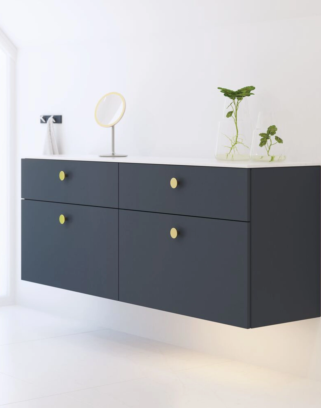 Dansani Calidris skåp med två lådor är den perfekta lösningen för dig som vill ha smart och stilren förvaring i ditt badrum. Med Calidris får du genomtänkt dansk design, och dessa skåp är utformade för att maximera utrymmet utan att kompromissa med funktionalitet eller estetik. I de två rymliga lådorna kan du enkelt organisera och förvara dina toalettartiklar, handdukar och badrumsartiklar på ett snyggt och prydligt sätt. Skåpens design är enkel och tidlös, vilket gör dem till ett elegant tillskott till alla badrum. OBS: Det tillkommer en startsavgift (BI1) per ek kulör och valfri färg. Betalas en gång pr. ek och valfri färg oavsett antal produkter. Kom ihåg att komplettera badrumsmöblerna med små, praktiska detaljr som du har glädje av varje dag. Exempelvis belysning i lådor och skåp, inbyggda eluttag och rörelsesensor på underbelysningen för att underlätta nattliga badrumsbesök. Dessa tillval beställs samtidigt som du köper dina möbler.