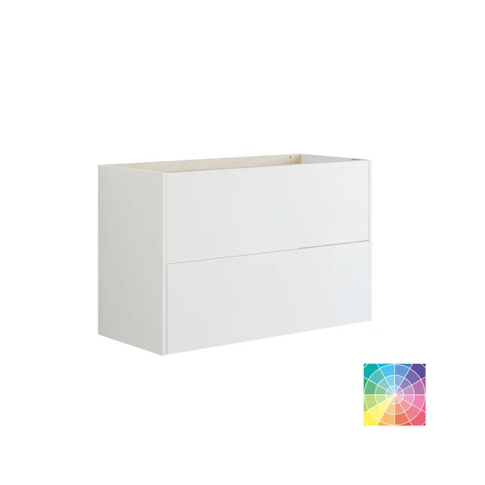 Förvandla ditt badrum med detta stiliga underskåp med slät front och två rymliga lådor. Detta skåp ger optimal förvaringsutrymme för alla dina badrumsartiklar, så att du enkelt kan hålla ordning. Den minimalistiska designen gör det till ett perfekt val för moderna badrum. Oavsett om du placerar en bänkskiva ovanpå eller kombinerar det med ett tvättställsskåp, tillför detta skåp ett elegant och funktionellt element till ditt badrum. Välj bland flera färger för att skapa din egen stil. OBS: Det tillkommer en startsavgift (BI1) för produkter med valfri färg. Den betalas en gång per valfri färg oavsett antal produkter. Kom ihåg att komplettera badrumsmöblerna med små, praktiska detaljr som du har glädje av varje dag. Exempelvis belysning i lådor och skåp, inbyggda eluttag och rörelsesensor på underbelysningen för att underlätta nattliga badrumsbesök. Dessa tillval beställs samtidigt som du köper dina möbler.