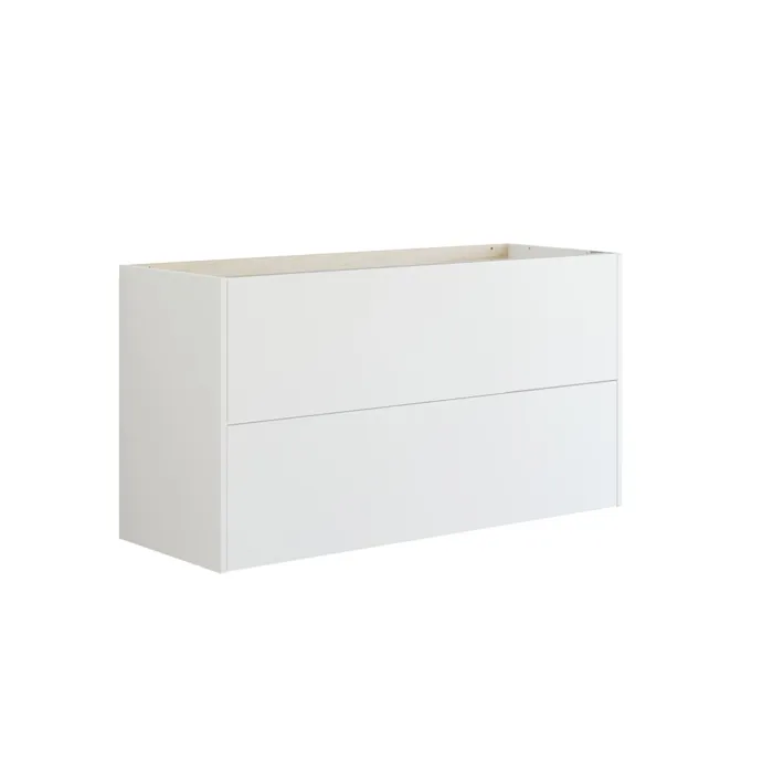 Förvandla ditt badrum med detta stiliga underskåp med slät front och två rymliga lådor. Detta skåp ger optimal förvaringsutrymme för alla dina badrumsartiklar, så att du enkelt kan hålla ordning. Den minimalistiska designen gör det till ett perfekt val för moderna badrum. Oavsett om du placerar en bänkskiva ovanpå eller kombinerar det med ett tvättställsskåp, tillför detta skåp ett elegant och funktionellt element till ditt badrum. Välj bland flera färger för att skapa din egen stil. OBS: Det tillkommer en startsavgift (BI1) för produkter med valfri färg. Den betalas en gång per valfri färg oavsett antal produkter. Kom ihåg att komplettera badrumsmöblerna med små, praktiska detaljr som du har glädje av varje dag. Exempelvis belysning i lådor och skåp, inbyggda eluttag och rörelsesensor på underbelysningen för att underlätta nattliga badrumsbesök. Dessa tillval beställs samtidigt som du köper dina möbler.