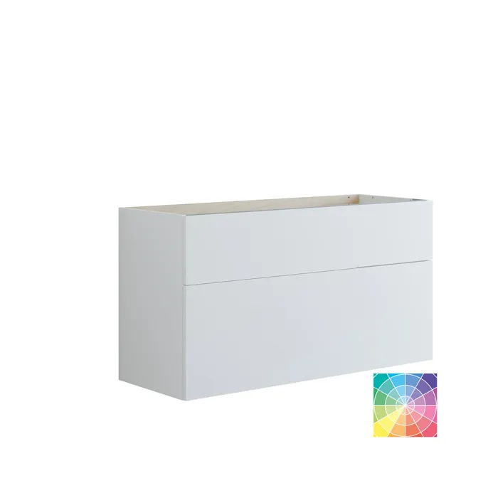 Skåpet med 2 lådor är 64 cm högt och har en hög nedre låda som ger gott om utrymme för dina saker. Du kan använda skåpen ensamma eller i kombination med ett tvättställsskåp med exempelvis en bänkskiva och ett handfat för en asymmetrisk lösning. Välj mellan olika färger för att matcha ditt badrum. Skåpet med 2 lådor ger både stil och funktionalitet till ditt badrum. Gör ditt badrum mer städat och elegant med dessa fantastiska skåp. OBS: Det tillkommer en startsavgift (BI1) för produkter med valfri färg. Den betalas en gång per valfri färg oavsett antal produkter. Kom ihåg att komplettera badrumsmöblerna med små, praktiska detaljr som du har glädje av varje dag. Exempelvis belysning i lådor och skåp, inbyggda eluttag och rörelsesensor på underbelysningen för att underlätta nattliga badrumsbesök. Dessa tillval beställs samtidigt som du köper dina möbler.