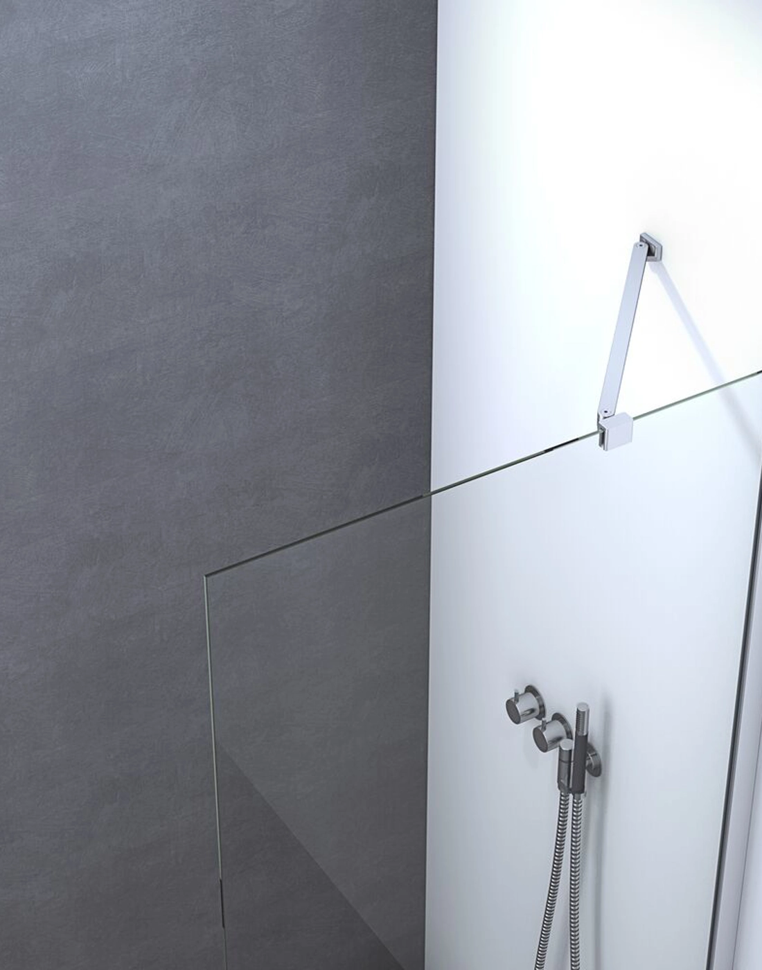 Dansani Match 30 cm långa stabiliseringsarm är perfekt för att hålla en fast duschvägg på plats. Den är monterad i vinkel mot väggen för extra stöd och den något kortare längden gör den lämplig för små badrum och duschutrymmen. Den passa bara på våra fasta väggar på 70 cm, om du har valt en bredare vägg behöver du en annan lösning för att stabilisera väggen. Stabiliseringsarmen är tillverkad av slitstarkt material som inte påverkas av fukt eller rost.