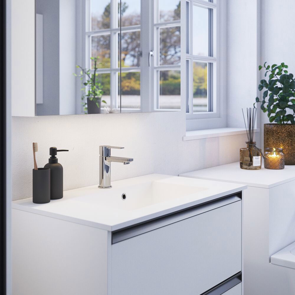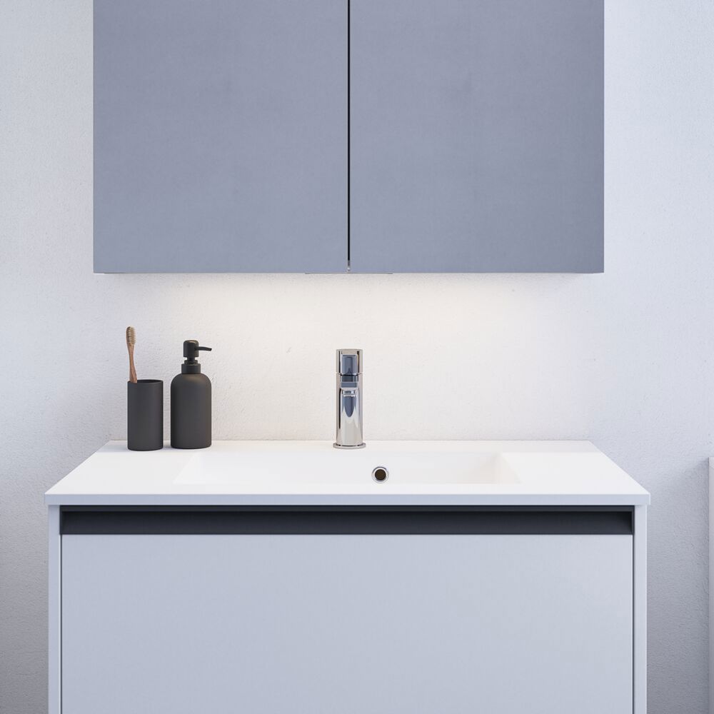 Få praktisk förvaring och snygg design med Style spegelskåp. Spegelskåpet är perfekt för förvaring av alla dina krämer, deodoranter, nagelklippare, tandborstar och mycket mer. Välj till lampor till spegelskåpet och styr ljusets färgton och styrka med ett enkelt tryck. Det vackra spegelskåpet innehåller en magnetisk skena, metallhylla, förstoringsspegel och eluttag, vilket gör din morgon- och kvällsrutin mycket enklare. OBS: Det tillkommer en startsavgift (BI1) för produkter med valfri färg. Den betalas en gång per valfri färg oavsett antal produkter.