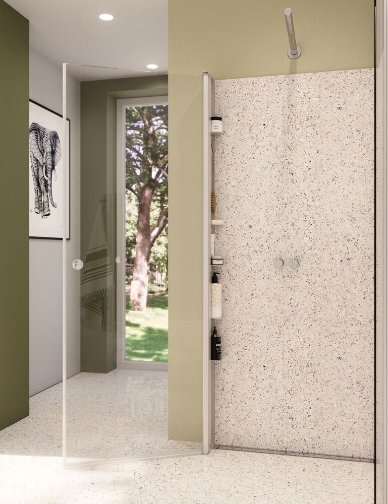 Tower är en innovativ lösning som ger exceptionellt förvaringsutrymme i duschen utan att kompromissa med estetiken. Tower har 5 flyttbara hyllor som är perfekta för att organisera de produkter som du använder i duschen. De praktiska knopparna ger dig möjlighet för att hänga en svamp, en borde eller andra små saker. För att få plats med Tower behöver du bara välja en vägg eller dörr som är 10 cm smalare. Tower är den perfekta lösningen för dig som vill optimera utrymmet i din dusch utan att kompromissa med stil och funktionalitet.