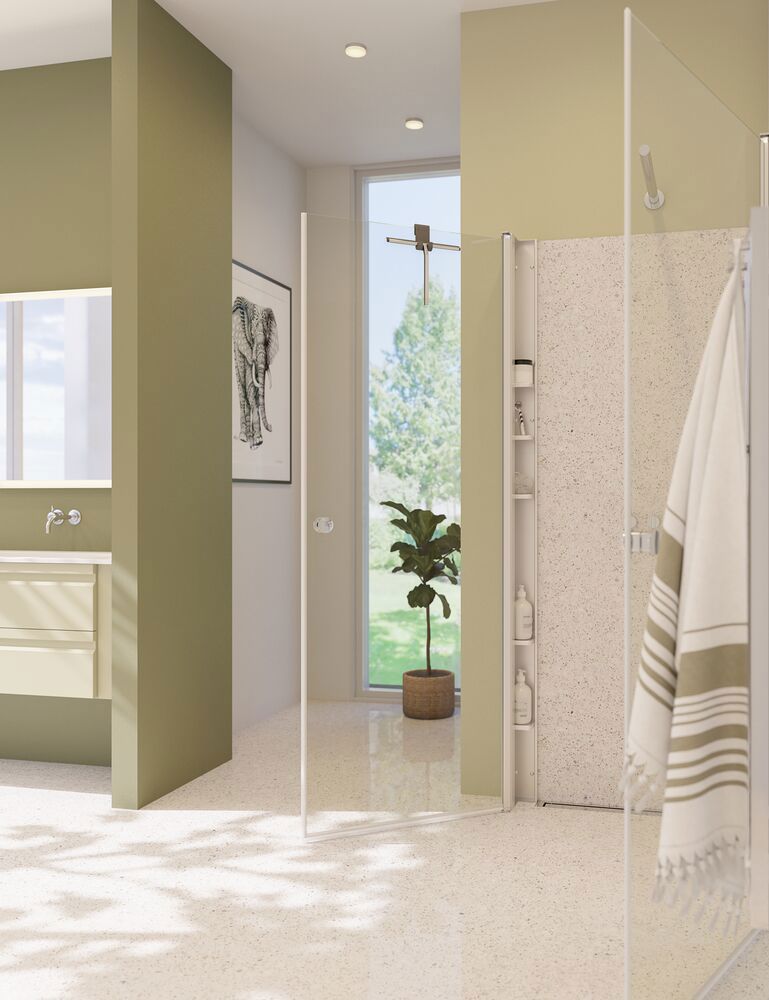 Dansani Tower är en innovativ lösning som ger exceptionellt förvaringsutrymme i duschen utan att kompromissa med estetiken. Detta intelligenta förvaringssystem kombineras med Dansanis Match-dörrar och väggar för att skapa en sammanhängande och elegant duschlösning. Tower har 5 flyttbara hyllor som är perfekta för att organisera de produkter som du använder i duschen. För att få plats med Tower behöver du bara välja en vägg eller dörr som är 10 cm smalare. Dansani Tower är den perfekta lösningen för dig som vill optimera utrymmet i din dusch utan att kompromissa med stil och funktionalitet. Med Tower får du både praktiskt förvaringsutrymme och en elegant duschupplevelse som ger dig en känsla av välbefinnande och ordning i ditt badrum.