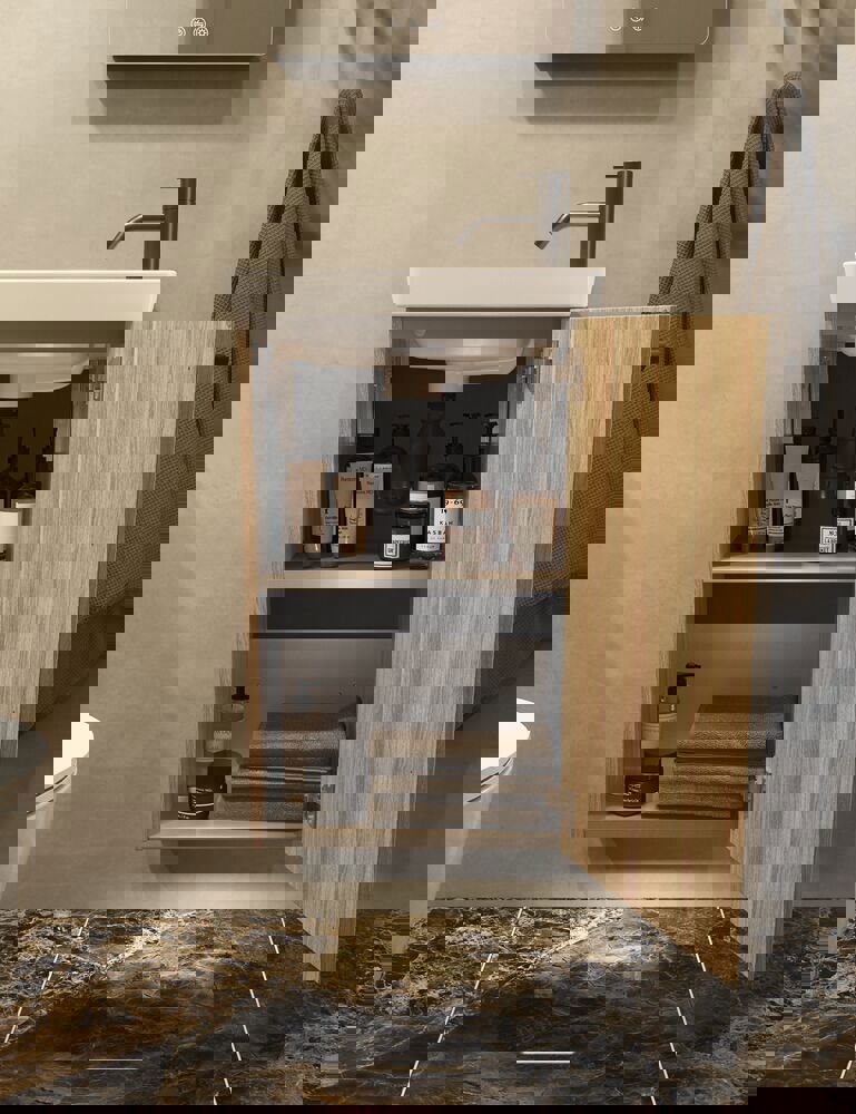 Tvättställsskåpet med 1 lucka är den perfekta lösningen för små badrum. Med ett djup på endast 26 cm tar den upp minimalt med utrymme, men du får ändå ett skåp med praktisk förvaring. Den eleganta designen passar perfekt med alla inredningar. Skåpet är både funktionellt och estetiskt tilltalande och hjälper till att skapa ordning och elegans i ditt badrum. Uppgradera ditt badrum med detta tvättställskåp och njut av den smarta utrymmesbesparande lösningen. OBS: Det tillkommer en startsavgift (BI1) för produkter med valfri färg. Den betalas en gång per valfri färg oavsett antal produkter. Kom ihåg att komplettera badrumsmöblerna med små, praktiska detaljr som du har glädje av varje dag. Exempelvis belysning i lådor och skåp, inbyggda eluttag och rörelsesensor på underbelysningen för att underlätta nattliga badrumsbesök. Dessa tillval beställs samtidigt som du köper dina möbler.
