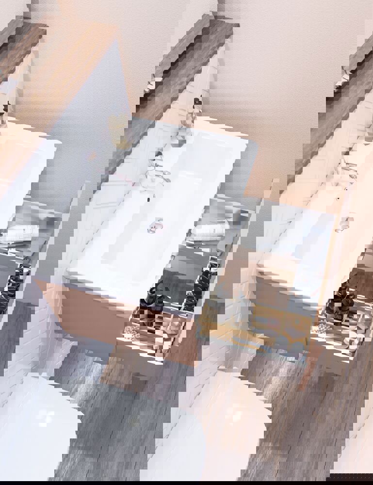 Gör ditt badrum till en stilfull oas med tvättställsskåpet med integrerat handtag. Detta skåp har en djup låda som är 32 cm hög och erbjuder optimal förvaringsutrymme för dina nödvändiga badrumsartiklar. Handtaget är som standard svart, vilket ger en modern kontrast till ditt badrum. Väljer du att få ditt tvättställsskåp i en valfri färg, kommer handtaget att färgas i samma nyans, vilket skapar en harmonisk enhet. Den minimalistiska designen med det integrerade handtaget ger ett rent och modernt uttryck som passar perfekt i varje modernt badrum. Det är inte bara funktionellt, utan också en estetisk tillägg som gör det enkelt att hålla ordning i ditt rum. OBS: Det tillkommer en startsavgift (BI1) för produkter med valfri färg. Den betalas en gång per valfri färg oavsett antal produkter. Kom ihåg att komplettera badrumsmöblerna med små, praktiska detaljr som du har glädje av varje dag. Exempelvis belysning i lådor och skåp, inbyggda eluttag och rörelsesensor på underbelysningen för att underlätta nattliga badrumsbesök. Dessa tillval beställs samtidigt som du köper dina möbler.
