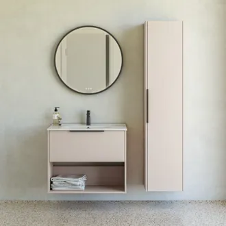 Här får du både förvaringsutrymme och möjlighet att visa upp dina favoritsaker. Detta underskåp har en praktisk låda och ett öppet fack som är perfekt för att visa upp dina fina handdukar eller dekorativa föremål. Finns i tre eleganta färger: vit, sand och ljusblå. Lådan är rymlig och det matchande handtaget är monterat så att den är klar att använda.