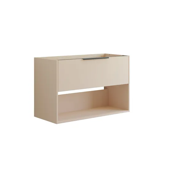 Här får du både förvaringsutrymme och möjlighet att visa upp dina favoritsaker. Detta underskåp har en praktisk låda och ett öppet fack som är perfekt för att visa upp dina fina handdukar eller dekorativa föremål. Finns i tre eleganta färger: vit, sand och ljusblå. Lådan är rymlig och det matchande handtaget är monterat så att den är klar att använda.