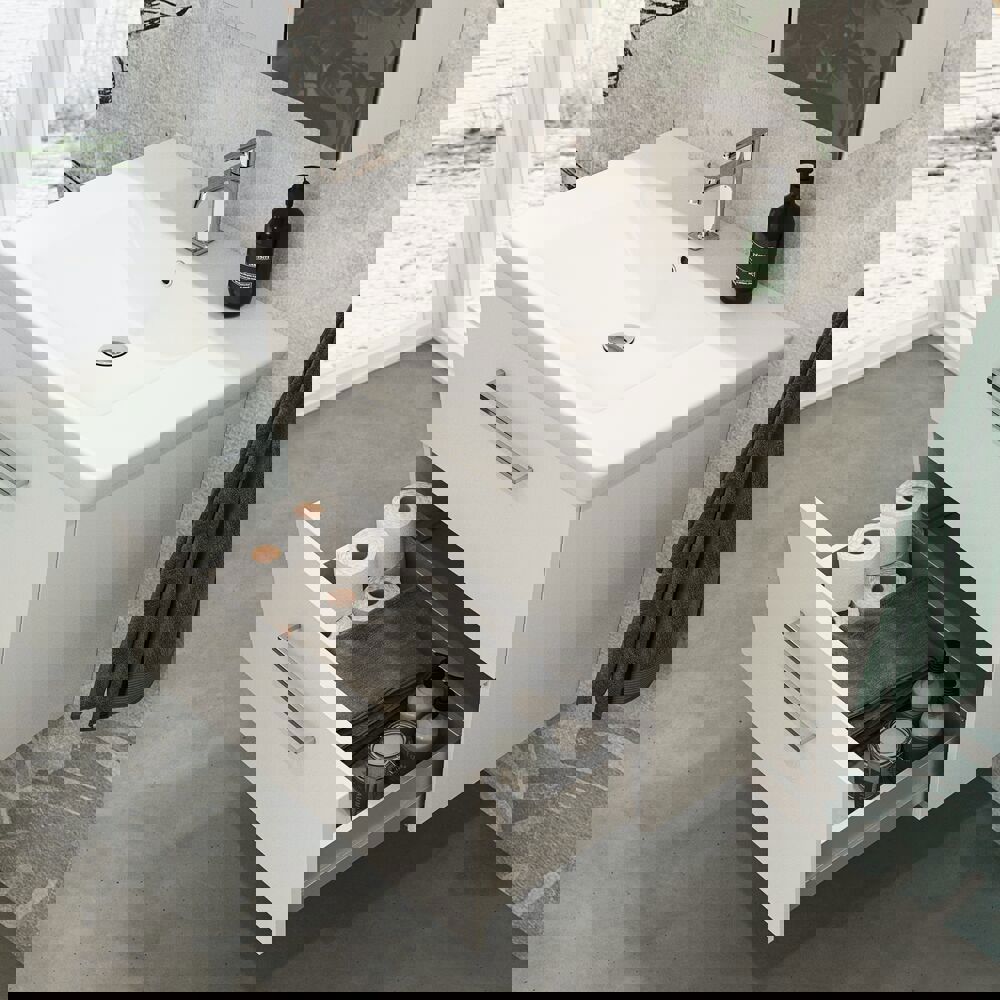 Uppgradera ditt badrum med Dansani Mido+ tvättställsskåp med 1 låda - här i ett djup på 44 cm. Detta tvättställsskåp ger dig det extra förvaringsutrymme du behöver utan att kompromissa med design och stil. Med mjuk stängningen, hållbara material och en vacker estetik är detta skåp en perfekt kombination av funktionalitet och elegans. Skapa en organiserad och elegant atmosfär i ditt badrum med Dansani Mido+. Alla Mido+ skåp levereras med det klassiska Base-greppet i krom. Du kan välja ett annat handtag för att få en annan look, men kom ihåg att det måste beställas tillsammans med dina möbler. Kom ihåg att komplettera badrumsmöblerna med små, praktiska detaljr som du har glädje av varje dag. Till exempel belysning och trälådor till dina lådor.