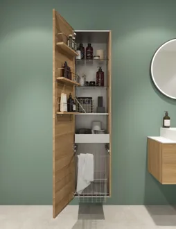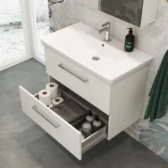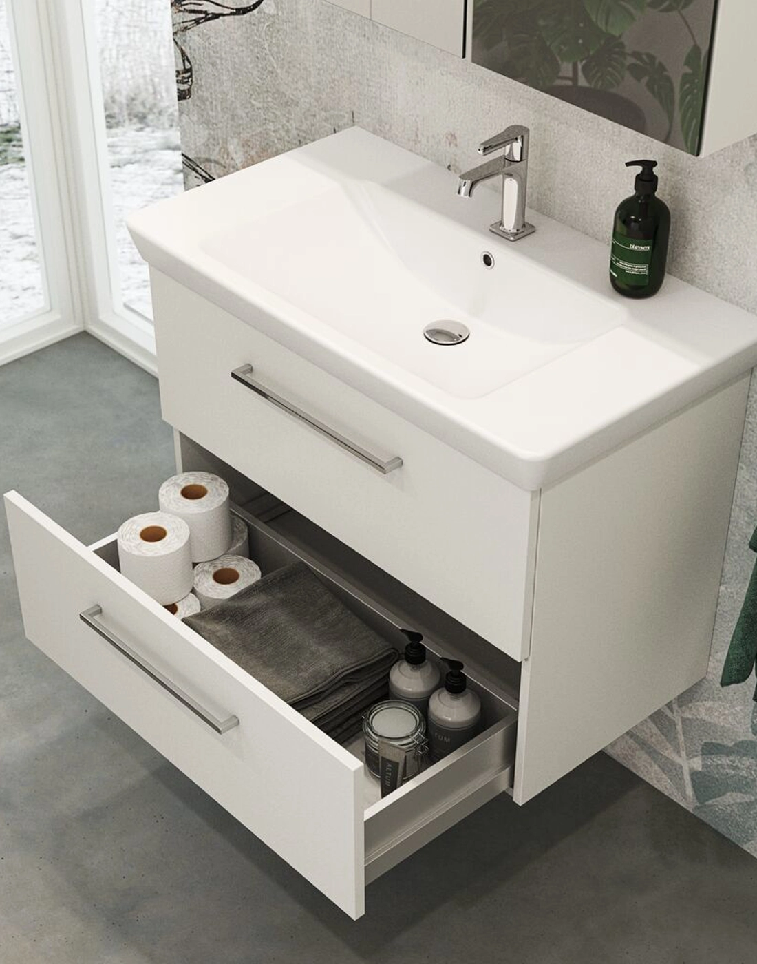 Uppgradera ditt badrum med Dansani Mido+ tvättställsskåp med 1 låda - här i ett djup på 44 cm. Detta tvättställsskåp ger dig det extra förvaringsutrymme du behöver utan att kompromissa med design och stil. Med mjuk stängningen, hållbara material och en vacker estetik är detta skåp en perfekt kombination av funktionalitet och elegans. Skapa en organiserad och elegant atmosfär i ditt badrum med Dansani Mido+. Alla Mido+ skåp levereras med det klassiska Base-greppet i krom. Du kan välja ett annat handtag för att få en annan look, men kom ihåg att det måste beställas tillsammans med dina möbler. Kom ihåg att komplettera badrumsmöblerna med små, praktiska detaljr som du har glädje av varje dag. Till exempel belysning och trälådor till dina lådor.
