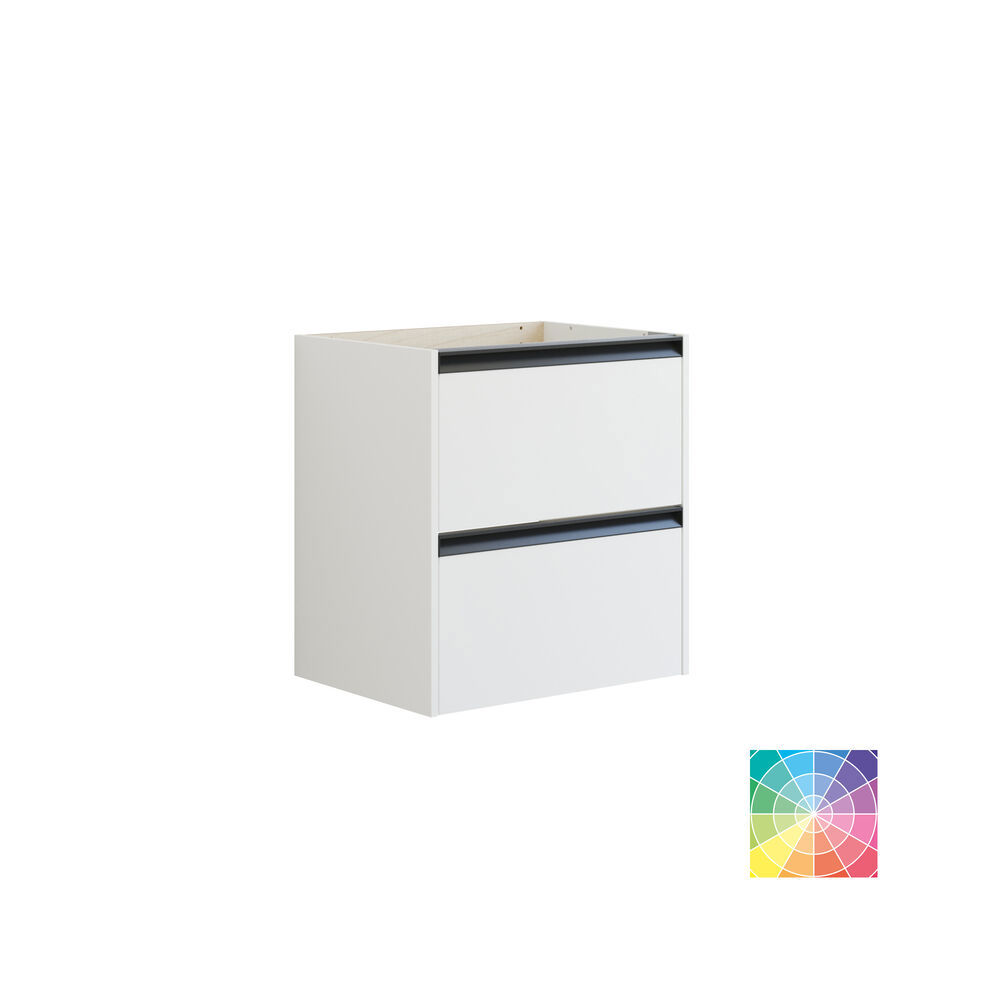 Ge ditt badrum en modern touch med tvättställsskåpet med integrerat grepp. Skåpet har två djupa lådor som är 32 cm höga och erbjuder bra förvaringsutrymme för dina dagliga behov. Det svarta greppet är standard och ger ett stilrent utseende, och om du väljer tvättställsskåpet i en valfri färg, kommer greppet harmoniskt att matcha skåpets nyans. Denna minimalistiska design skapar en elegant atmosfär och gör det enkelt att hålla ordning i ditt badrum. OBS: Det tillkommer en startsavgift (BI1) för produkter med valfri färg. Den betalas en gång per valfri färg oavsett antal produkter. Kom ihåg att komplettera badrumsmöblerna med små, praktiska detaljr som du har glädje av varje dag. Exempelvis belysning i lådor och skåp, inbyggda eluttag och rörelsesensor på underbelysningen för att underlätta nattliga badrumsbesök. Dessa tillval beställs samtidigt som du köper dina möbler.
