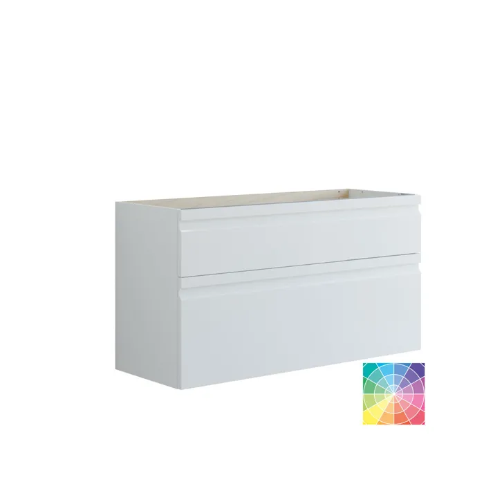 Tvättställsskåpet med 2 lådor är 64 cm högt och har en extra hög bottenlåda som ger dig mer förvaringsutrymme. Den integrerade grepplösningen säkerställer enkel åtkomst till lådorna och tillför en modern känsla. Välj mellan flera olika färger för att anpassa skåpet till din personliga stil. Med detta tvättställsskåp kan du enkelt organisera dina badrumsartiklar och hålla allt prydligt. Med ett tvättställsskåp med 2 lådor får du både praktisk funktionalitet och en vacker tillägg till ditt badrum. Gör ditt rum mer organiserat och elegant med detta fantastiska tvättställsskåp. OBS: Det tillkommer en startsavgift (BI1) för produkter med valfri färg. Den betalas en gång per valfri färg oavsett antal produkter. Kom ihåg att komplettera badrumsmöblerna med små, praktiska detaljr som du har glädje av varje dag. Exempelvis belysning i lådor och skåp, inbyggda eluttag och rörelsesensor på underbelysningen för att underlätta nattliga badrumsbesök. Dessa tillval beställs samtidigt som du köper dina möbler.