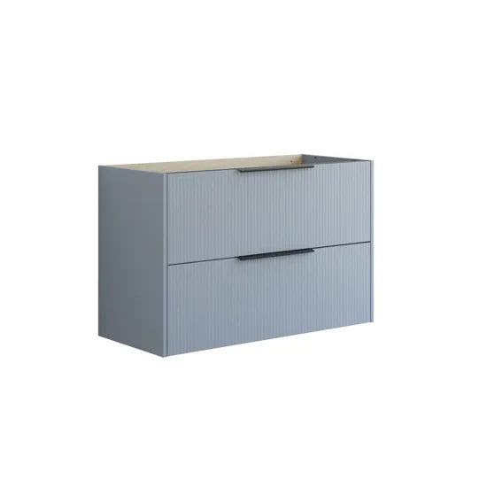 Det här underskåpet kombinerar funktionalitet och stil med sina 2 rymliga lådor och en elegant randig front. Skåpet finns i vitt, sand eller ljusblått och ger ditt badrum en modern och unik look. Lådorna erbjuder gott om förvaringsutrymme och handtagen är monterade och redo att användas.