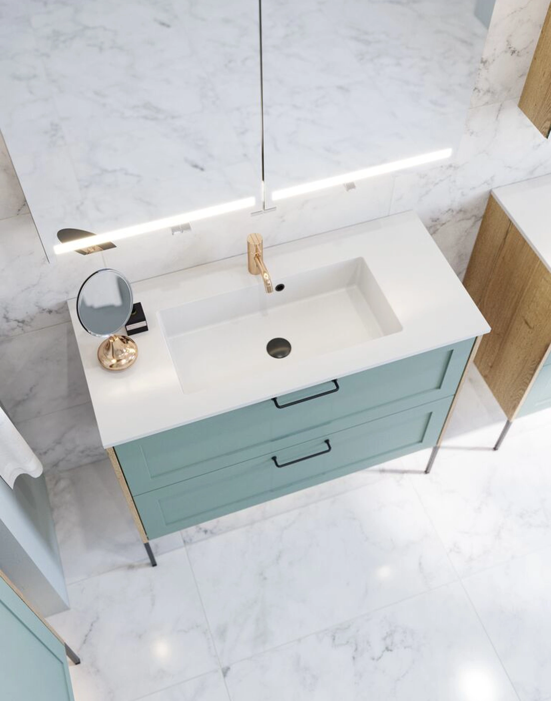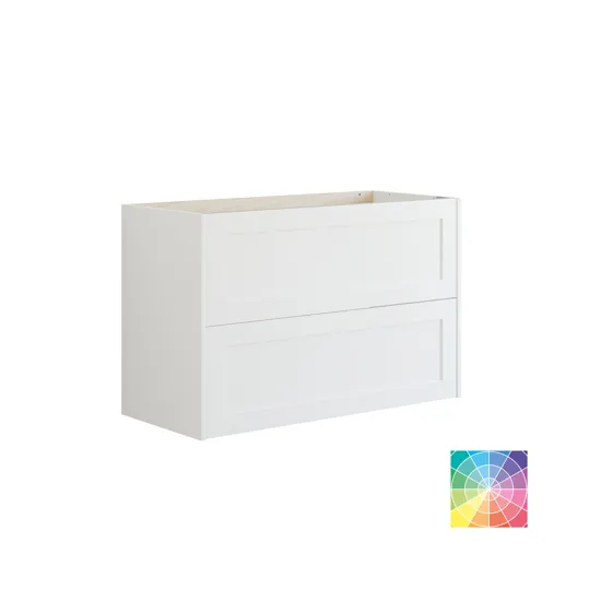 Förnya ditt badrum med tvättställsskåpet med ramfront. Detta skåp har två rymliga lådor, vardera 32 cm höga, som ger gott om förvaringsutrymme för dina badrumsartiklar. Ramfronten tillför en modern och stilfull dimension till ditt badrum, vilket gör det till ett estetiskt tillskott. Den tidlösa designen säkerställer att skåpet passar in i alla inredningar och bidrar till en organiserad och elegant atmosfär. OBS: Det tillkommer en startsavgift (BI1) för produkter med valfri färg. Den betalas en gång per valfri färg oavsett antal produkter. Kom ihåg att komplettera badrumsmöblerna med små, praktiska detaljr som du har glädje av varje dag. Exempelvis belysning i lådor och skåp, inbyggda eluttag och rörelsesensor på underbelysningen för att underlätta nattliga badrumsbesök. Dessa tillval beställs samtidigt som du köper dina möbler.
