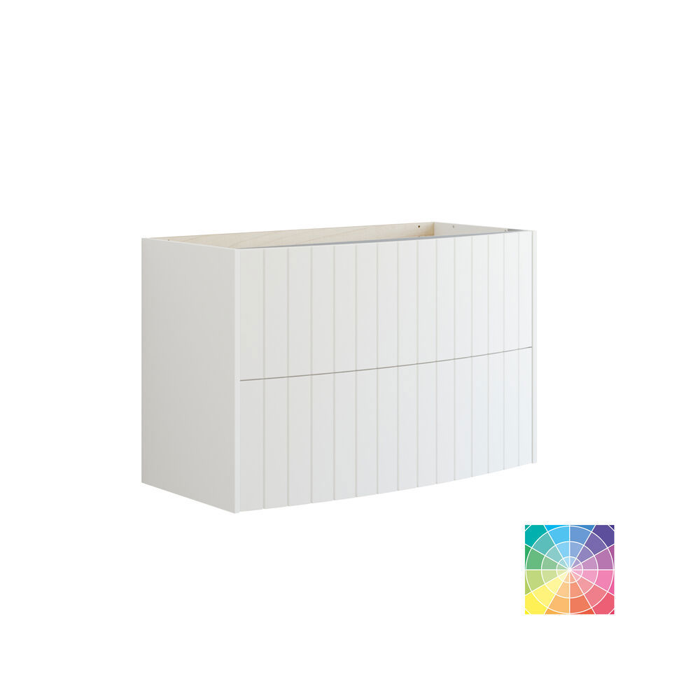Detta tvättställskåp med 2 lådor erbjuder en charmig retrodesign för ditt badrum. De välvda fronterna har vackra spår för ett karaktärsfullt utseende. Skåpen finns i flera olika färger, så att du kan välja den färg som bäst passar din personliga stil. Förutom sitt vackra utseende är skåpen också praktiska med två rymliga lådor. Tillför tidlös elegans till ditt badrum med detta tvättställskåp och njut av den unika känsla det ger badrummet. OBS: Det tillkommer en startsavgift (BI1) för produkter med valfri färg. Den betalas en gång per valfri färg oavsett antal produkter. Kom ihåg att komplettera badrumsmöblerna med små, praktiska detaljr som du har glädje av varje dag. Exempelvis belysning i lådor och skåp, inbyggda eluttag och rörelsesensor på underbelysningen för att underlätta nattliga badrumsbesök. Dessa tillval beställs samtidigt som du köper dina möbler.