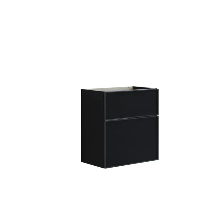 Tvättställsskåpet med lådor erbjuder en smart och stilfull lösning för ditt badrum. Den kompakta djupet på 35 cm gör det perfekt för mindre badrum, medan den höga underlådan ger plats för större föremål. Den eleganta designen med svart aluminiumsram ger en modern touch, och du får också möjlighet att organisera dina badrumsartiklar på ett praktiskt och stiligt sätt. OBS: Det tillkommer en startsavgift (BI1) för produkter med valfri färg. Den betalas en gång per valfri färg oavsett antal produkter. Kom ihåg att komplettera badrumsmöblerna med små, praktiska detaljr som du har glädje av varje dag. Exempelvis belysning i lådor och skåp, inbyggda eluttag och rörelsesensor på underbelysningen för att underlätta nattliga badrumsbesök. Dessa tillval beställs samtidigt som du köper dina möbler.