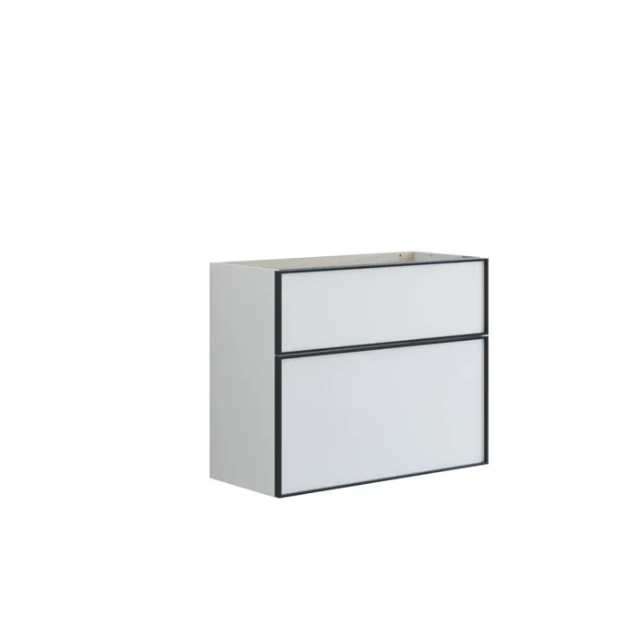 Tvättställsskåpet med lådor erbjuder en smart och stilfull lösning för ditt badrum. Den kompakta djupet på 35 cm gör det perfekt för mindre badrum, medan den höga underlådan ger plats för större föremål. Den eleganta designen med svart aluminiumsram ger en modern touch, och du får också möjlighet att organisera dina badrumsartiklar på ett praktiskt och stiligt sätt. OBS: Det tillkommer en startsavgift (BI1) för produkter med valfri färg. Den betalas en gång per valfri färg oavsett antal produkter. Kom ihåg att komplettera badrumsmöblerna med små, praktiska detaljr som du har glädje av varje dag. Exempelvis belysning i lådor och skåp, inbyggda eluttag och rörelsesensor på underbelysningen för att underlätta nattliga badrumsbesök. Dessa tillval beställs samtidigt som du köper dina möbler.