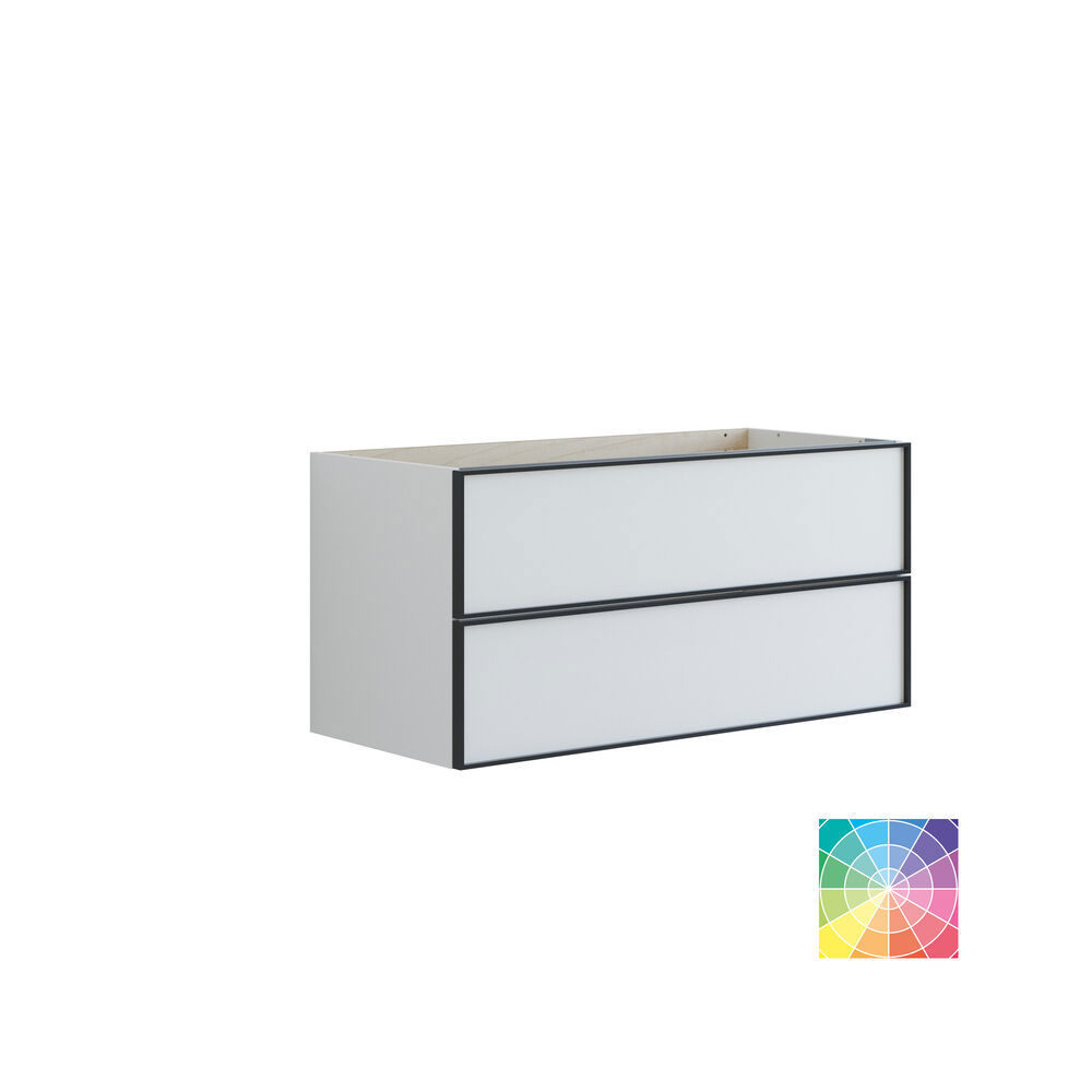 Uppgradera ditt badrum med ett tvättställsskåp med 2 lådor. Detta stiliga skåp är 48 cm högt och 44 cm djupt, vilket gör det idealiskt för att organisera dina badprodukter. Den eleganta svarta ramen runt lådorna tillför ett modernt och stilrent uttryck som passar i alla inredningar. Välj bland olika färger för att hitta den som passar bäst till din stil. Skåpet erbjuder smart förvaring, så att du enkelt kan hålla ordning. Tvättställsskåpet med 2 lådor kombinerar funktionalitet med estetik och är en vacker tillägg till ditt badrum. Gör ditt rum mer organiserat och inbjudande med detta fantastiska tvättställsskåp. OBS: Det tillkommer en startsavgift (BI1) för produkter med valfri färg. Den betalas en gång per valfri färg oavsett antal produkter. Kom ihåg att komplettera badrumsmöblerna med små, praktiska detaljr som du har glädje av varje dag. Exempelvis belysning i lådor och skåp, inbyggda eluttag och rörelsesensor på underbelysningen för att underlätta nattliga badrumsbesök. Dessa tillval beställs samtidigt som du köper dina möbler.