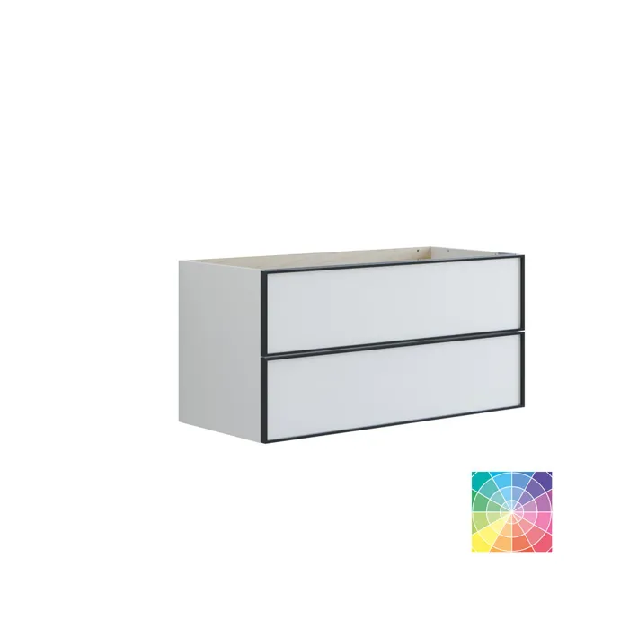 Uppgradera ditt badrum med ett tvättställsskåp med 2 lådor. Detta stiliga skåp är 48 cm högt och 44 cm djupt, vilket gör det idealiskt för att organisera dina badprodukter. Den eleganta svarta ramen runt lådorna tillför ett modernt och stilrent uttryck som passar i alla inredningar. Välj bland olika färger för att hitta den som passar bäst till din stil. Skåpet erbjuder smart förvaring, så att du enkelt kan hålla ordning. Tvättställsskåpet med 2 lådor kombinerar funktionalitet med estetik och är en vacker tillägg till ditt badrum. Gör ditt rum mer organiserat och inbjudande med detta fantastiska tvättställsskåp. OBS: Det tillkommer en startsavgift (BI1) för produkter med valfri färg. Den betalas en gång per valfri färg oavsett antal produkter. Kom ihåg att komplettera badrumsmöblerna med små, praktiska detaljr som du har glädje av varje dag. Exempelvis belysning i lådor och skåp, inbyggda eluttag och rörelsesensor på underbelysningen för att underlätta nattliga badrumsbesök. Dessa tillval beställs samtidigt som du köper dina möbler.