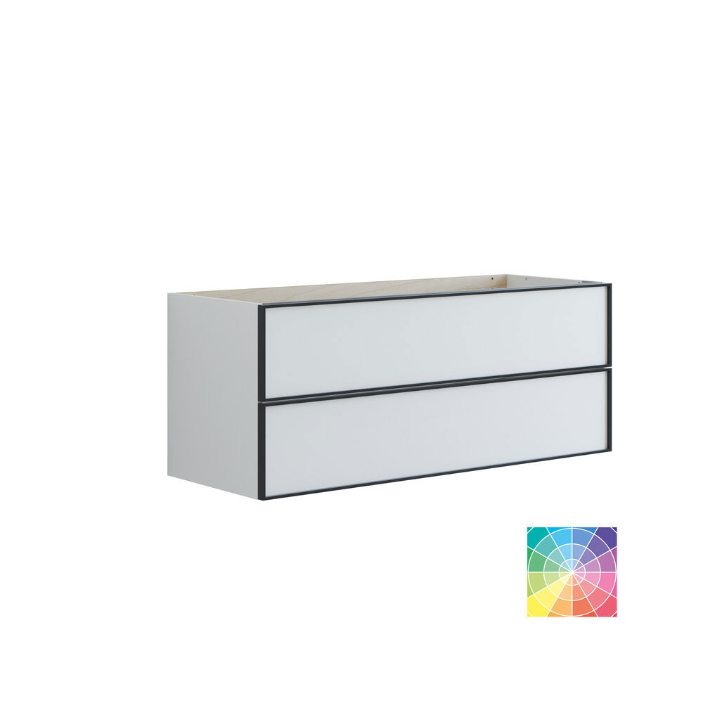 Uppgradera ditt badrum med ett tvättställsskåp med 2 lådor. Detta stiliga skåp är 48 cm högt och 44 cm djupt, vilket gör det idealiskt för att organisera dina badprodukter. Den eleganta svarta ramen runt lådorna tillför ett modernt och stilrent uttryck som passar i alla inredningar. Välj bland olika färger för att hitta den som passar bäst till din stil. Skåpet erbjuder smart förvaring, så att du enkelt kan hålla ordning. Tvättställsskåpet med 2 lådor kombinerar funktionalitet med estetik och är en vacker tillägg till ditt badrum. Gör ditt rum mer organiserat och inbjudande med detta fantastiska tvättställsskåp. OBS: Det tillkommer en startsavgift (BI1) för produkter med valfri färg. Den betalas en gång per valfri färg oavsett antal produkter. Kom ihåg att komplettera badrumsmöblerna med små, praktiska detaljr som du har glädje av varje dag. Exempelvis belysning i lådor och skåp, inbyggda eluttag och rörelsesensor på underbelysningen för att underlätta nattliga badrumsbesök. Dessa tillval beställs samtidigt som du köper dina möbler.