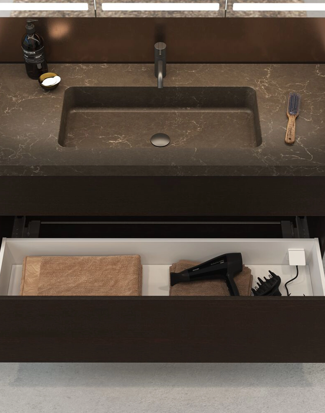 Föreställ dig ett skåp som är både vackert och användbart i ditt badrum - det är Dansani Calidris tvättställsskåp med två lådor. Och här får du även ett tvättställsskåp med en högre nedre låda, vilket ger dig gott om förvaringsutrymme i ditt badrum. Tvättstället har en minimalistisk och enkel design som ger ditt badrum en modern look. De två stora lådorna är inte bara bra att förvara saker i, de hjälper också till att hålla ditt badrum städat och snyggt. Så om du vill ha ett snyggt och prydligt badrum är Dansani Calidris tvättställskåp med 2 lådor det rätta valet för dig. OBS: Det tillkommer en startsavgift (BI1) per ek kulör och valfri färg. Betalas en gång pr. ek och valfri färg oavsett antal produkter. Kom ihåg att komplettera badrumsmöblerna med små, praktiska detaljr som du har glädje av varje dag. Exempelvis belysning i lådor och skåp, inbyggda eluttag och rörelsesensor på underbelysningen för att underlätta nattliga badrumsbesök. Dessa tillval beställs samtidigt som du köper dina möbler.
