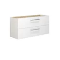 Här är ett vackert tvättställsskåp från Dansani Mido+ med 2 lådor och plats för dubbel bassäng i tvättstället . Den 120 cm breda tvättställsskåpet är den perfekta lösningen om du har lite extra utrymme i ditt badrum. Du kan använda både ett 120 cm enkelt tvättställ och ett 120 cm dubbelt tvättställ. Med ett dubbel tvättställ kan du ha flera personer vid tvättstället samtidigt, och ni kan till och med ha varsin bassäng. Tvättställsslåpet är med 2 lådor för extra förvaring av alla dina badrumsartiklar. Alla Mido+ skåp levereras med det klassiska Base-greppet i krom. Du kan välja ett annat handtag för att få en annan look, men kom ihåg att det måste beställas tillsammans med dina möbler. Kom ihåg att komplettera badrumsmöblerna med små, praktiska detaljr som du har glädje av varje dag. Till exempel belysning och trälådor till dina lådor.