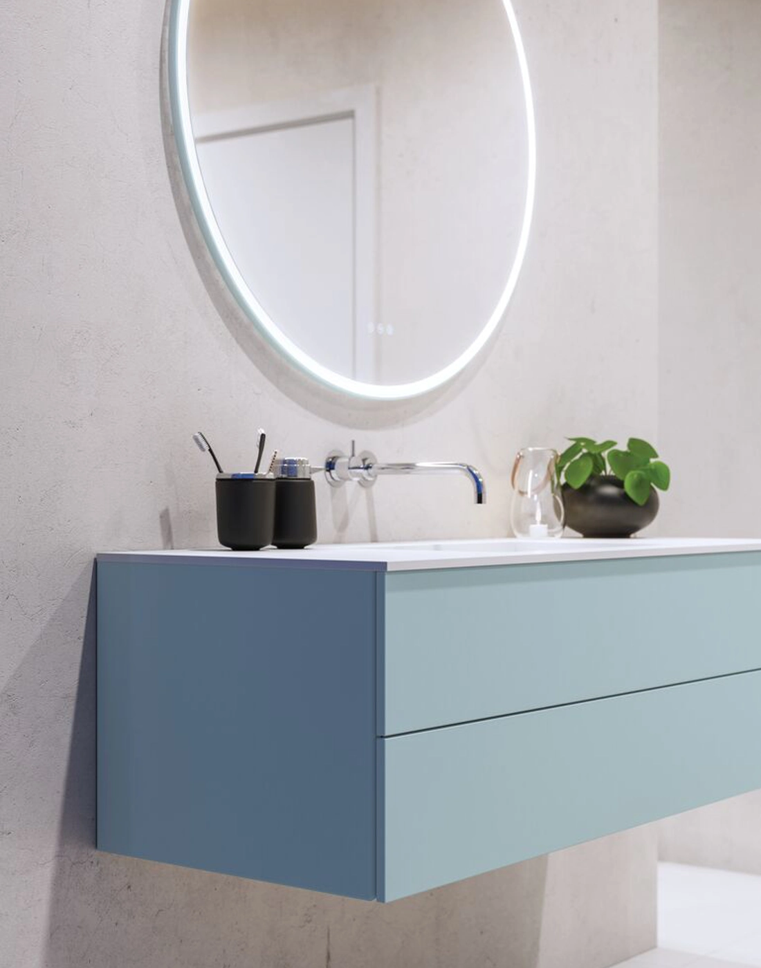 När du väljer ett Dansani Calidris tvättställsskåp med två lådor får du minimalistisk design och rena linjer i ditt badrum. Med ett djup på 40 cm passar tvättställsskåpet in i mindre badrum. Du får inte bara plats för stil, utan också gott om förvaringsmöjligheter. I de två rymliga lådorna kan du enkelt förvara alla de saker som du använder dagligen i badrummet. Det här är ett tvättställsskåp där funktionalitet och design går hand i hand. Detta skåp är den perfekta lösningen om du letar efter både elegans och ordning i ditt badrum. OBS: Det tillkommer en startsavgift (BI1) per ek kulör och valfri färg. Betalas en gång pr. ek och valfri färg oavsett antal produkter. Kom ihåg att komplettera badrumsmöblerna med små, praktiska detaljr som du har glädje av varje dag. Exempelvis belysning i lådor och skåp, inbyggda eluttag och rörelsesensor på underbelysningen för att underlätta nattliga badrumsbesök. Dessa tillval beställs samtidigt som du köper dina möbler.