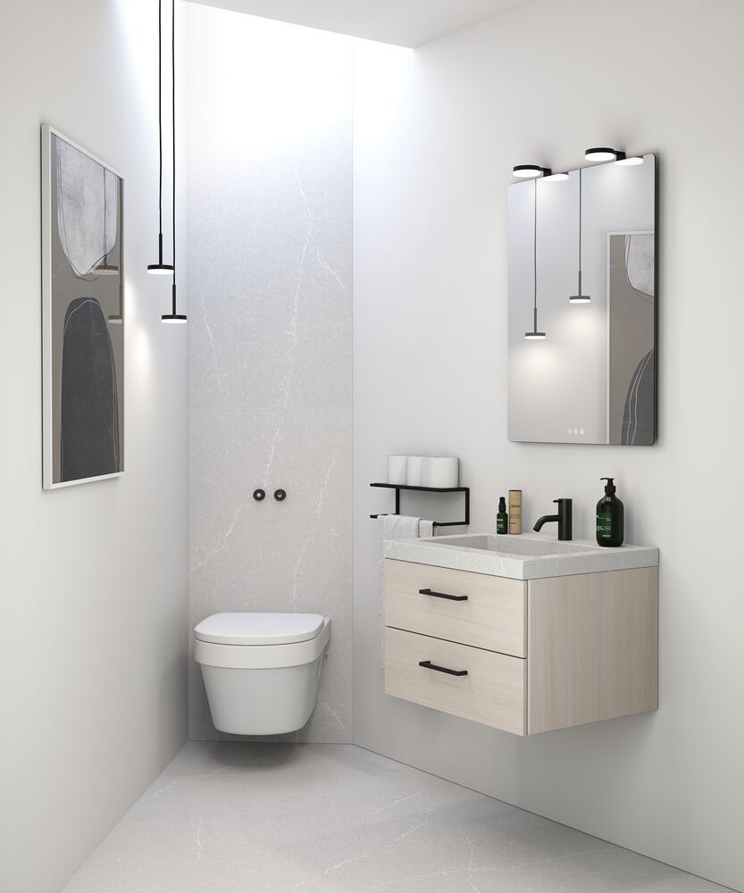 Dansani Calidris tvättställsskåp med 2 lådor är en vacker blandning av stil och funktionalitet för ditt badrum. Den minimalistiska designen och de rena linjerna hos Calidris tvättställsskåp ger en sofistikerad estetik till din badrumsmiljö. De två rymliga lådorna ger inte bara praktisk förvaring, utan gör det också lätt att hålla ditt badrum städat och organiserat. Med fokus på både funktionalitet och design är Dansani Calidris tvättställsskåp med två lådor det perfekta valet för dig som vill ha en elegant och välorganiserad lösning för badrummet. OBS: Det tillkommer en startsavgift (BI1) per ek kulör och valfri färg. Betalas en gång pr. ek och valfri färg oavsett antal produkter. Kom ihåg att komplettera badrumsmöblerna med små, praktiska detaljr som du har glädje av varje dag. Exempelvis belysning i lådor och skåp, inbyggda eluttag och rörelsesensor på underbelysningen för att underlätta nattliga badrumsbesök. Dessa tillval beställs samtidigt som du köper dina möbler.