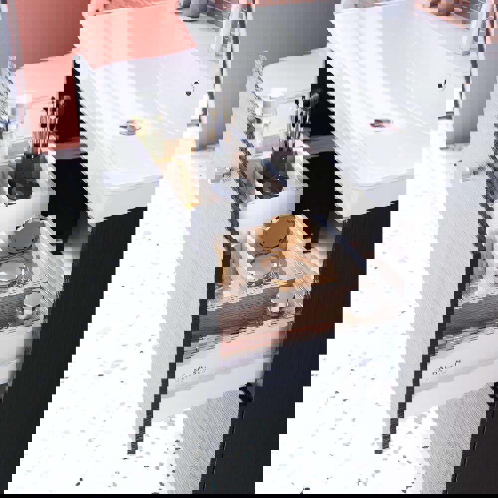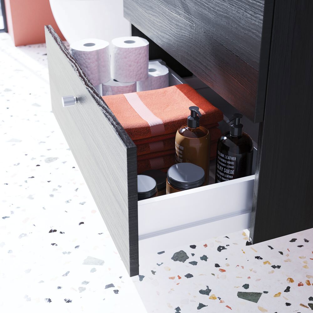 Dansani Mido+ tvättställsskåp med 2 lådor är dansk design till ett överkomligt pris. Mido+ är vår prisvärda serie, men det finns inga kompromisser när det gäller design eller material. Och i detta vackra tvättställsskåp får du 2 lådor för förvaring av dina badrumsartiklar, och naturligtvis är detta tvättställsskåp också tillgängligt med flera olika alternativ. Dansani Mido+ tvättställsskåp finns i ett brett utbud av färger, så att du kan få ett tvättställsskåp som matchar ditt badrum och din personliga stil. Alla Mido+ skåp levereras med det klassiska Base-greppet i krom. Du kan välja ett annat handtag för att få en annan look, men kom ihåg att det måste beställas tillsammans med dina möbler. Kom ihåg att komplettera badrumsmöblerna med små, praktiska detaljr som du har glädje av varje dag. Till exempel belysning och trälådor till dina lådor.