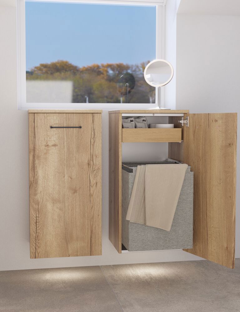 Upptäck funktionaliteten som underskåpet med slät front i Version B erbjuder. Med en bredd på 40 cm och ett djup på 35 cm är detta underskåp designat med en praktisk utdragbar låda och en tvättpåse, vilket ger extra förvaringsutrymme för både kosmetika och tvätt. De smarta lösningarna säkerställer att du enkelt kan hålla ordning på ditt badrum och har allt inom räckhåll när du behöver det. Den släta fronten tillför en stilren design som kommer att lyfta din badrumsinredning, samtidigt som den erbjuder optimal förvaringsplats. OBS: Det tillkommer en startsavgift (BI1) för produkter med valfri färg. Den betalas en gång per valfri färg oavsett antal produkter. Kom ihåg att komplettera badrumsmöblerna med små, praktiska detaljr som du har glädje av varje dag. Exempelvis belysning i lådor och skåp, inbyggda eluttag och rörelsesensor på underbelysningen för att underlätta nattliga badrumsbesök. Dessa tillval beställs samtidigt som du köper dina möbler.