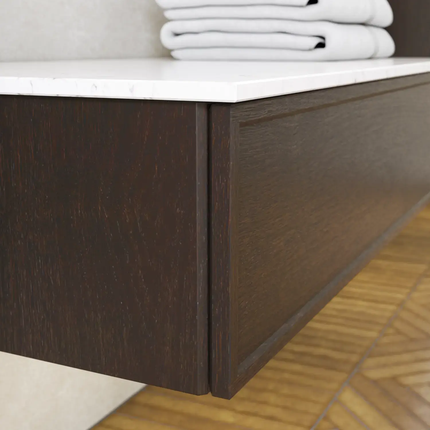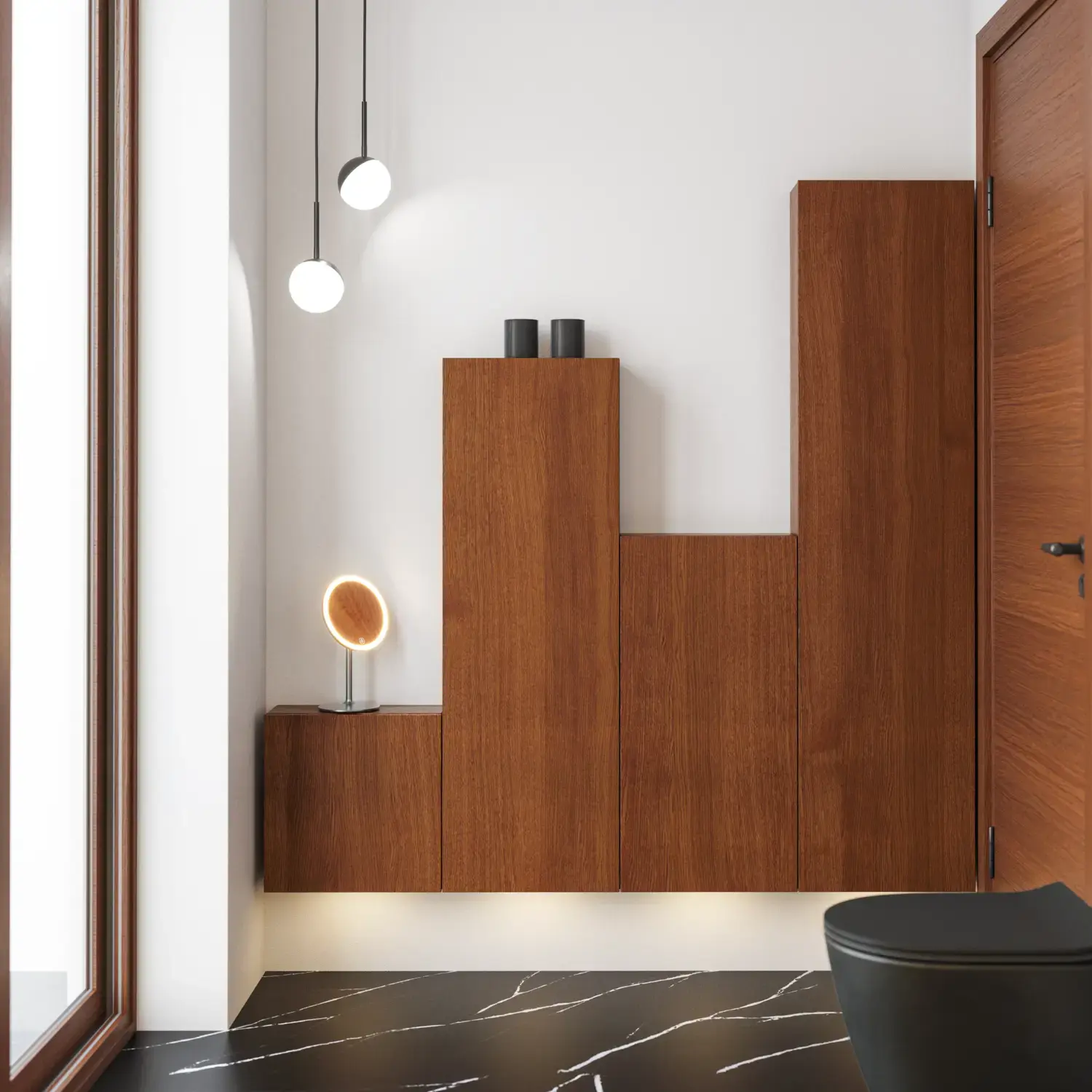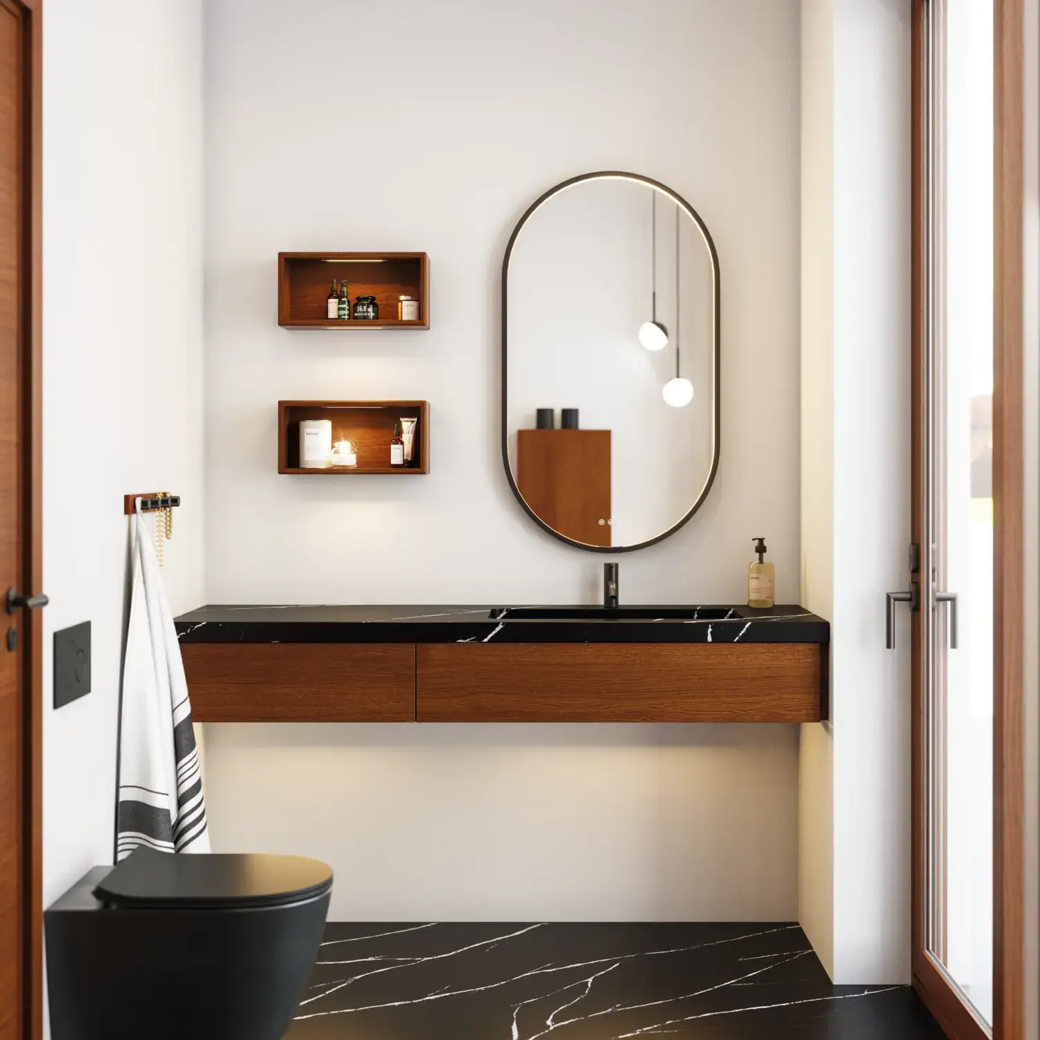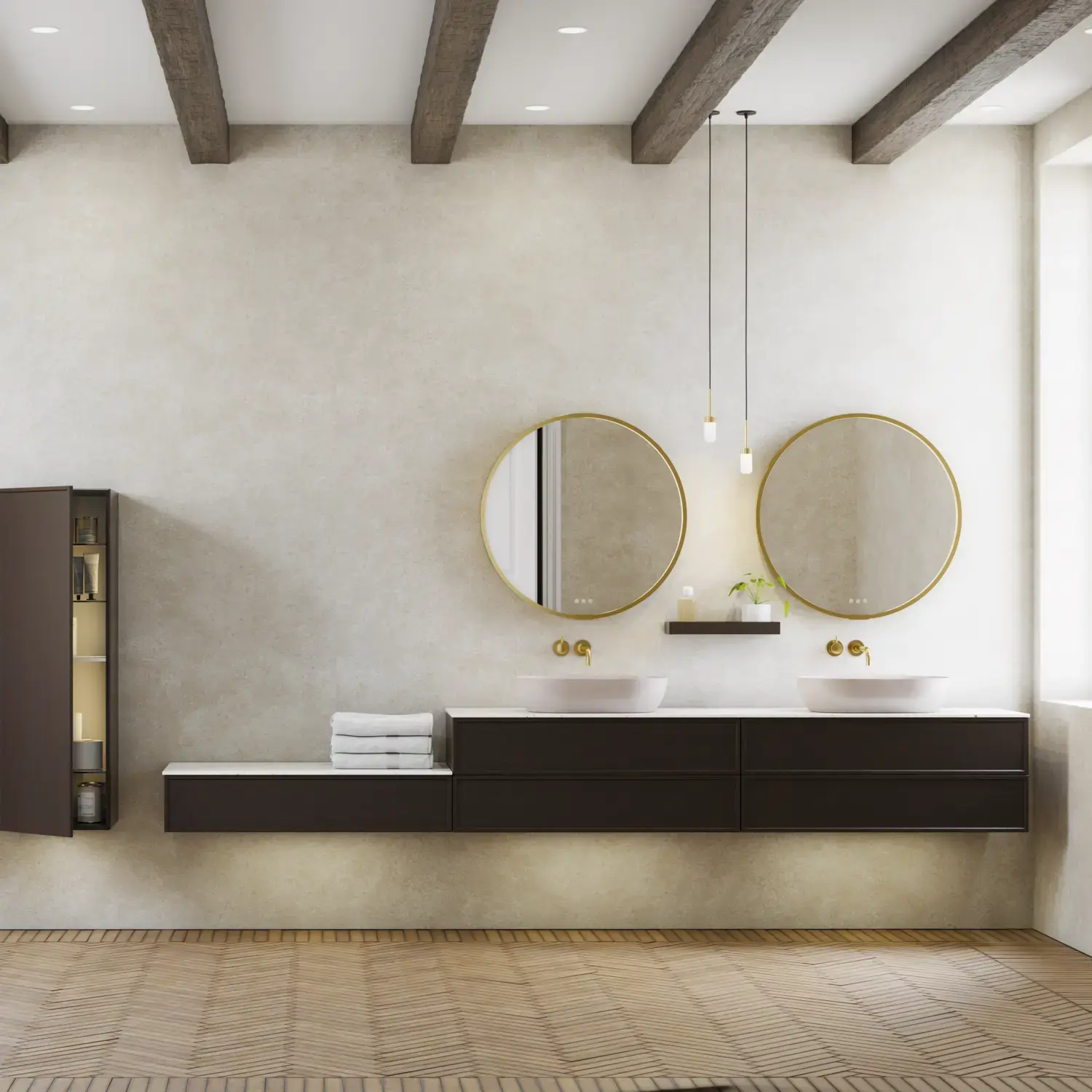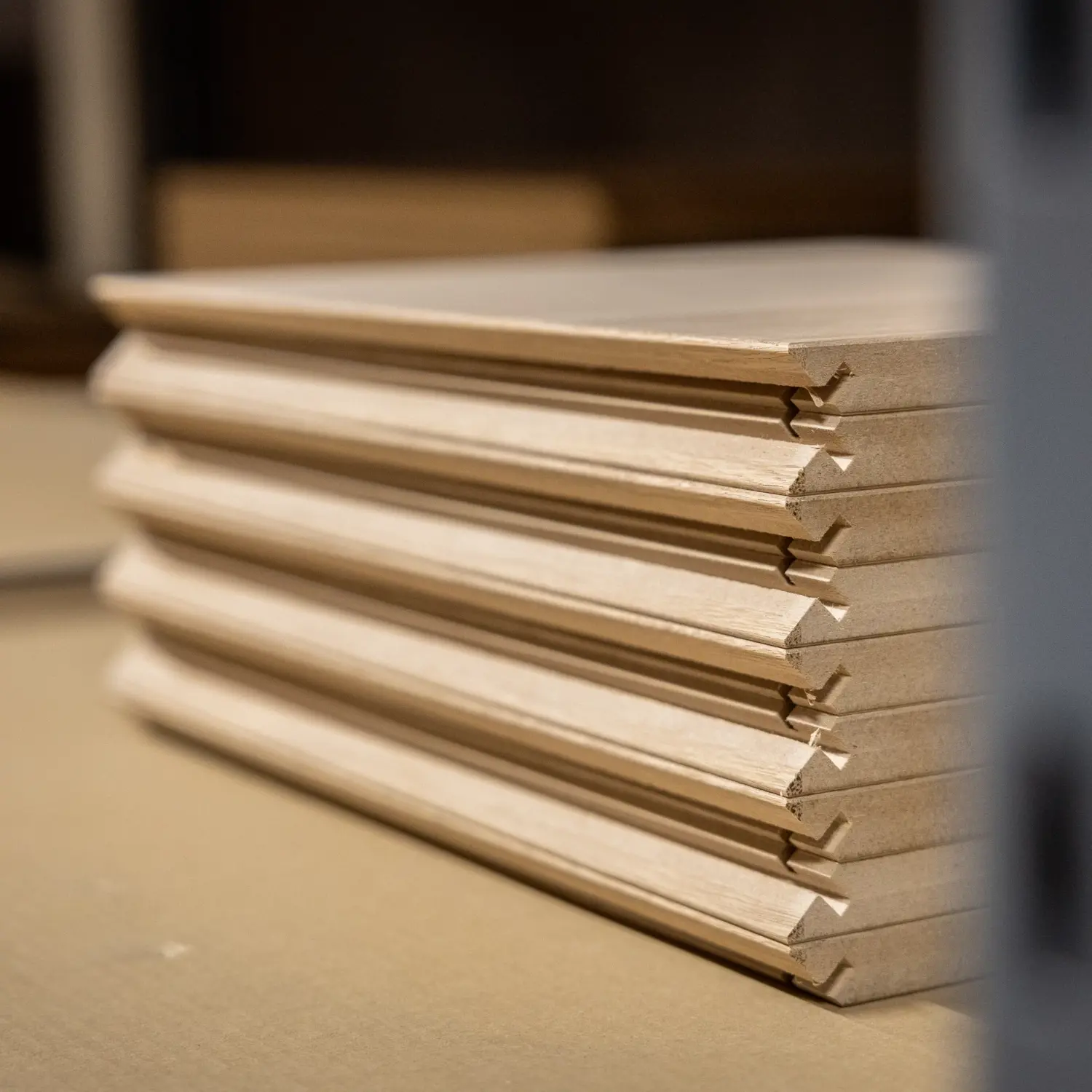 Med Calidris kan du nu välja bland sju raffinerade träslag och ett enfärgat fanér – alla med möjlighet till både spårad yta och ram. Ett hantverksmässigt uttryck som ger ditt badrum värme, karaktär och en tidlös elegans.