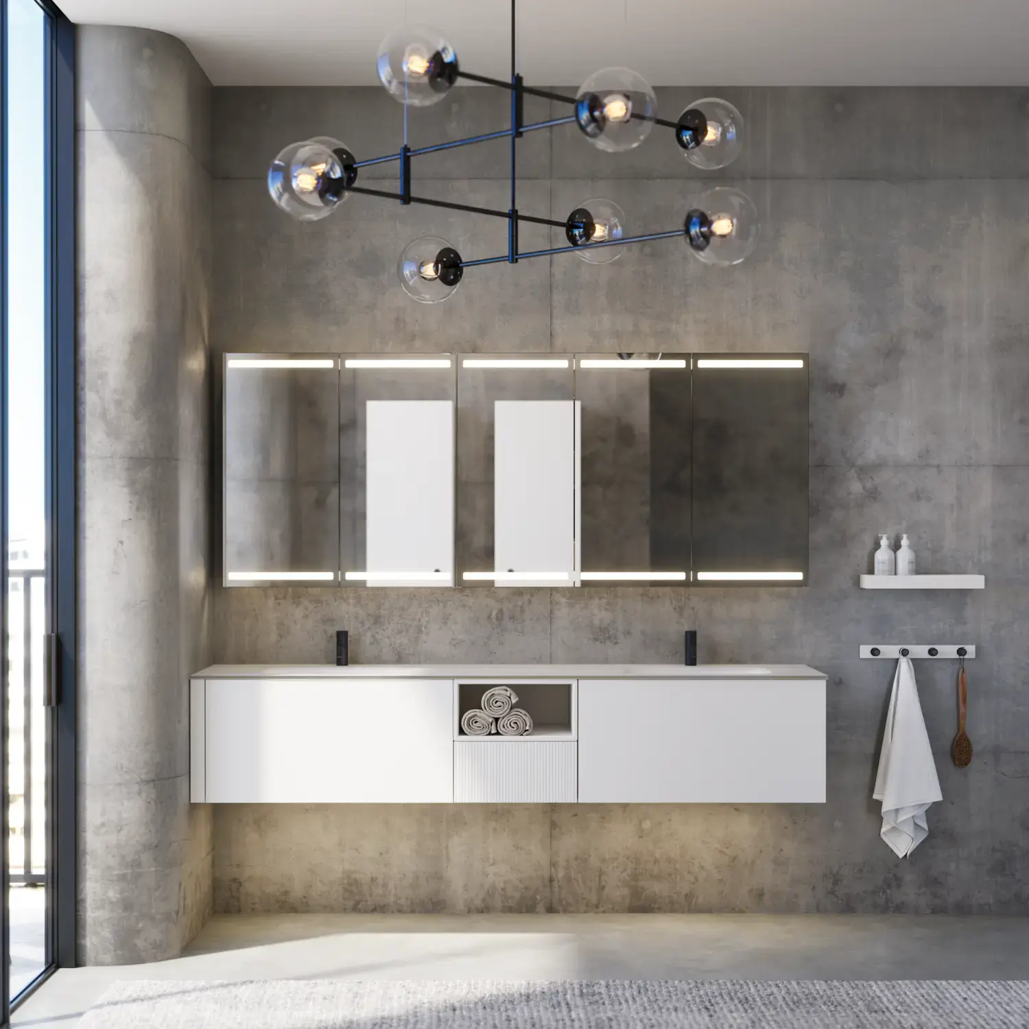 Ett exklusivt badrum är ett ställe där ljuset måste vara behagligt oavsett om du ska göra dig klar för natten eller sminka dig på morgonen. Med pendellampor, taklampor, belysning i spegel och spegelskåp samt indirekt belysning både i och under skåp och i utdragslådor får du ett perfekt ljus dygnet runt för allt du ska göra i badrummet. Med våra lampor kan du skapa ett unikt sammanhang i hela badrummet och alla lamporna är IP44-godkända för placering i våtrum.