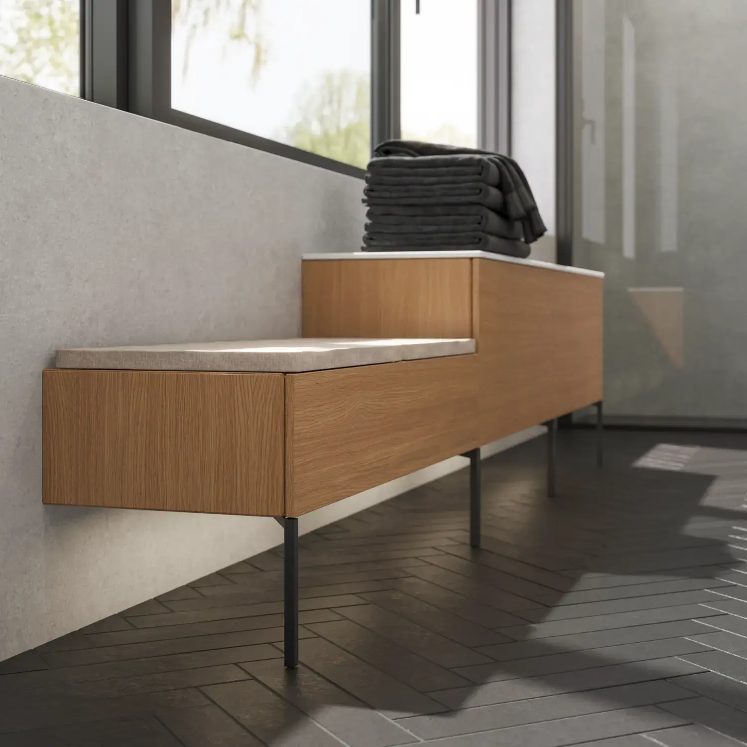 En sittbänk ger extra komfort i vardagen – en trivsam plats att sätta sig på när fötterna ska torkas och en extra hjälp för både stora och små.