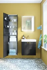 rikligt med förvaringsutrymme i höga tvättställsskåp