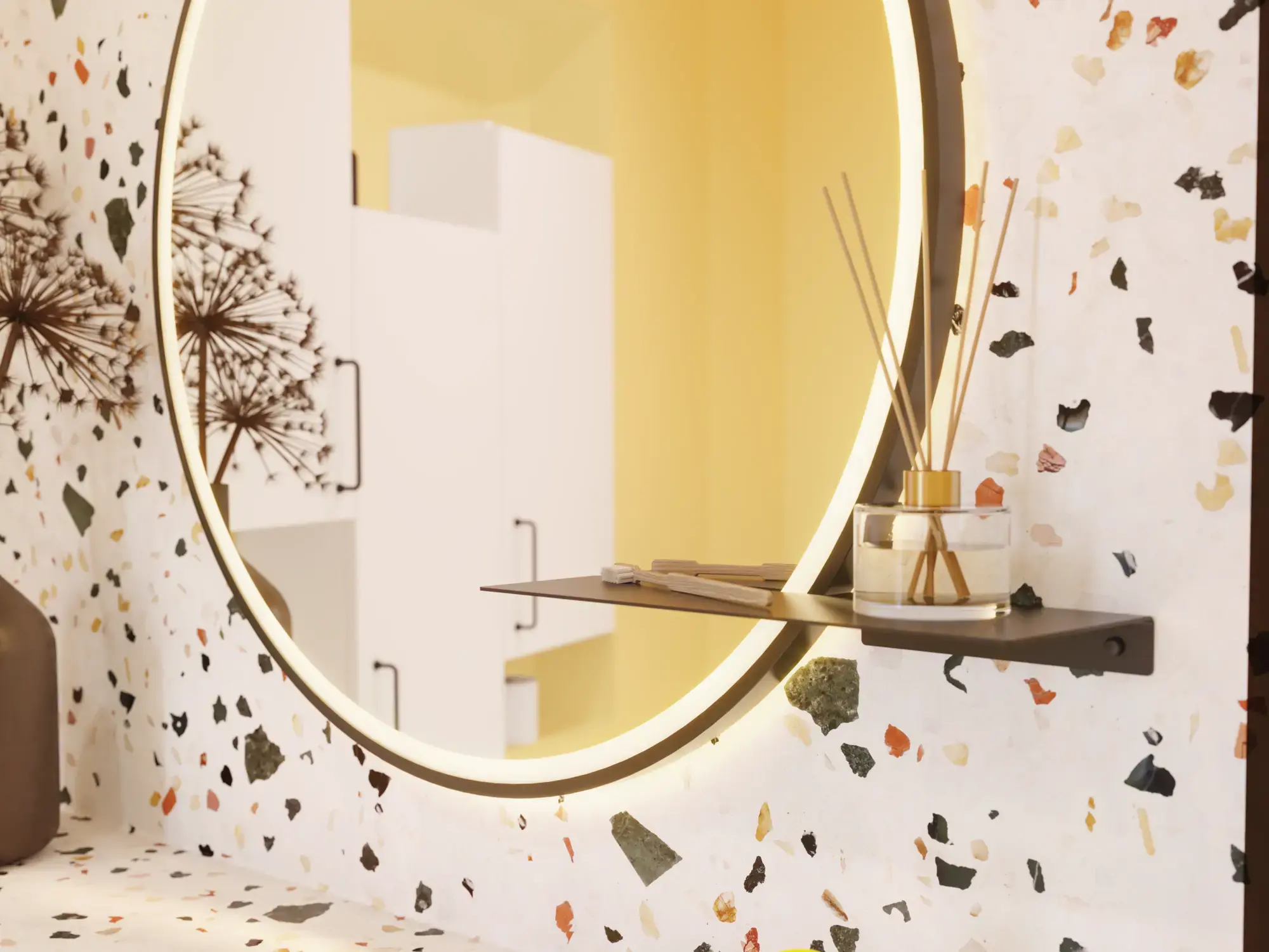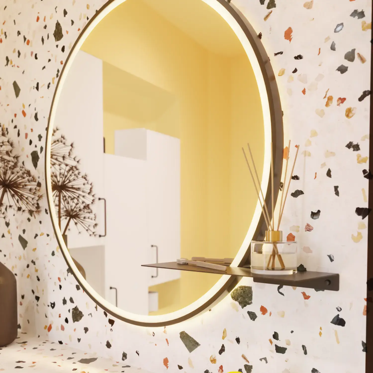 För att skapa extra effekt kan du använda Present minispegel med en matchande hylla. Speglar som dekoration är en trend och den tonade effekten på både spegel och hyllan tillför ett snygg och elegant uttryck till ditt badrum.