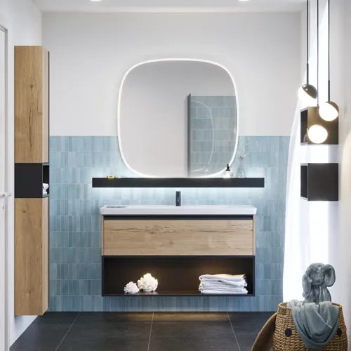 För att göra det enklare för dig att visualisera din inredning har vi utvecklat verktyget ”Design your bathroom”. Här kan du skräddarsy speglar, möbler och belysning för att skapa ett badrum som passar dina behov perfekt.
