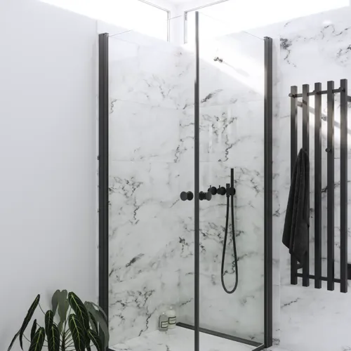 Du får alltså både stil och funktion i en och samma lösning – och om du vill skapa en helhet i badrummet matchar de svarta handdukstorkarna perfekt med våra Match duschväggar med svarta detaljer. Det ger en röd tråd i inredningen, utan att det känns tungt eller dominerande.